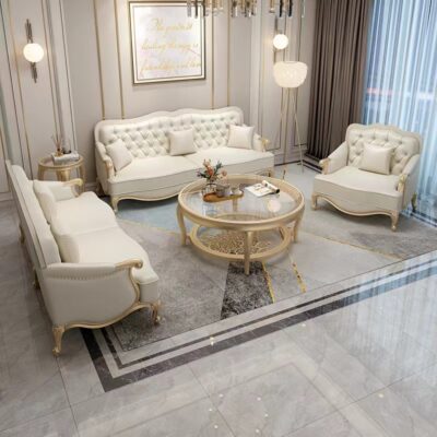 Bán buôn ánh sáng hiện đại sang trọng da nghệ thuật sofa kết hợp phòng khách Châu Âu ba người sofa da nội thất gỗ rắn của Mỹ
