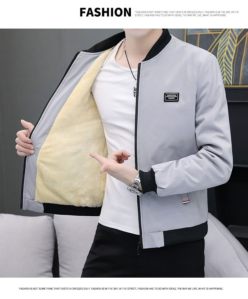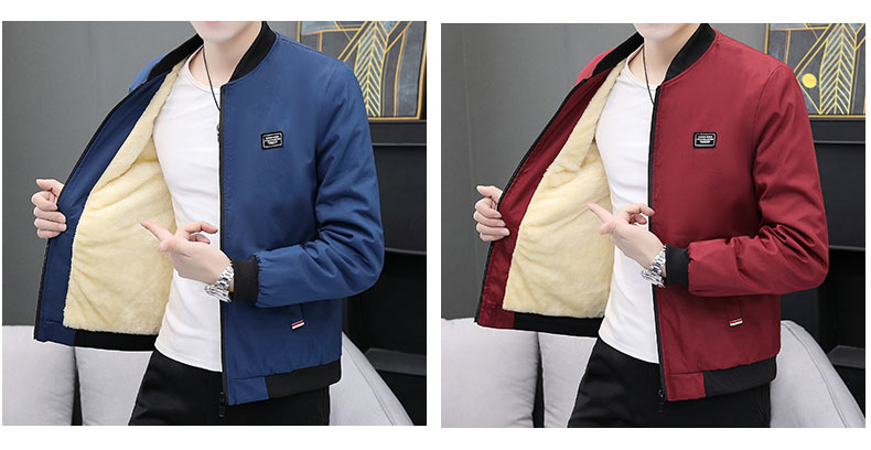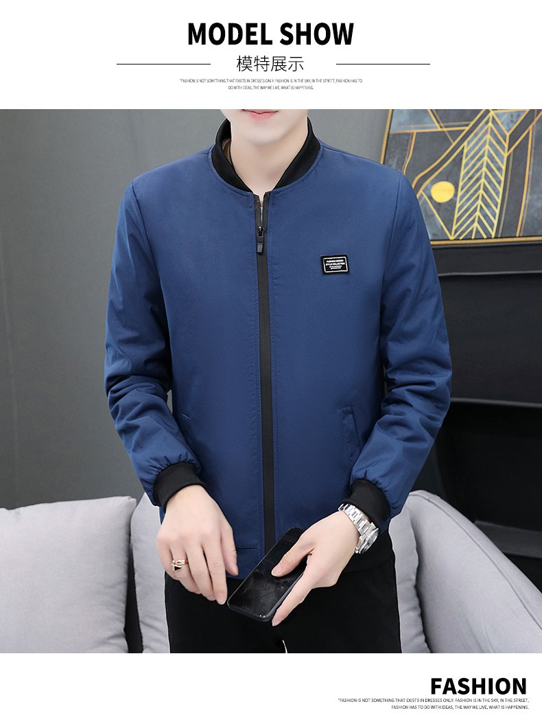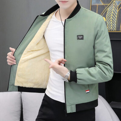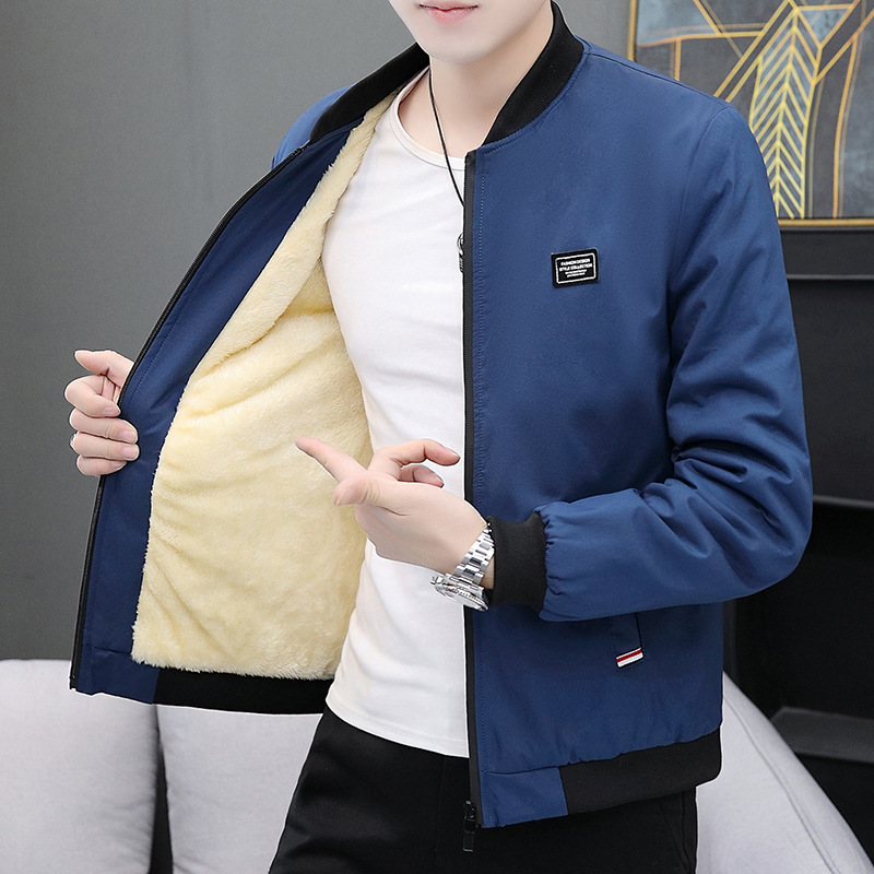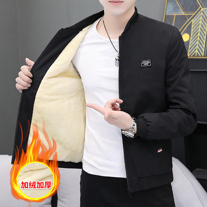 Bán buôn áo khoác nam phong cách Hàn Quốc giản dị áo khoác lông cừu nam xuân thu cổ đứng xu hướng hàng đầu quần áo nam thu đông dày dặn