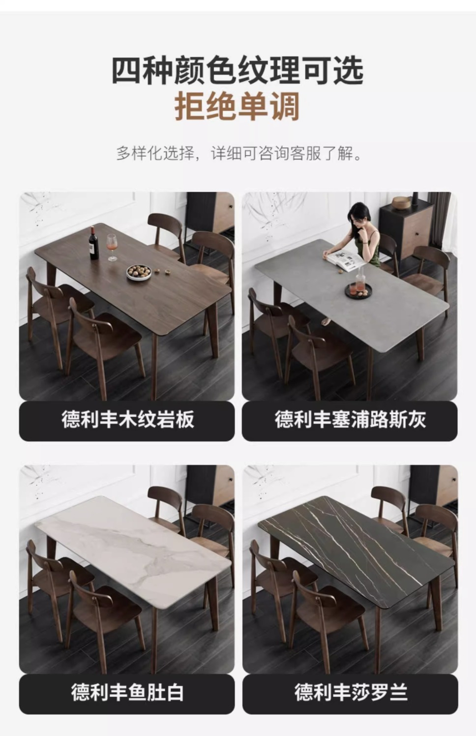 Bán buôn bàn ăn đá phiến vân gỗ đơn giản hiện đại tất cả gỗ óc chó màu Bắc Âu chữ nhật bàn ăn phòng ăn nhỏ là sản phẩm nổi bật trong dòng bàn ăn nhập khẩu, thiết kế hiện đại và sang trọng, phù hợp với nhiều không gian nội thất cao cấp.