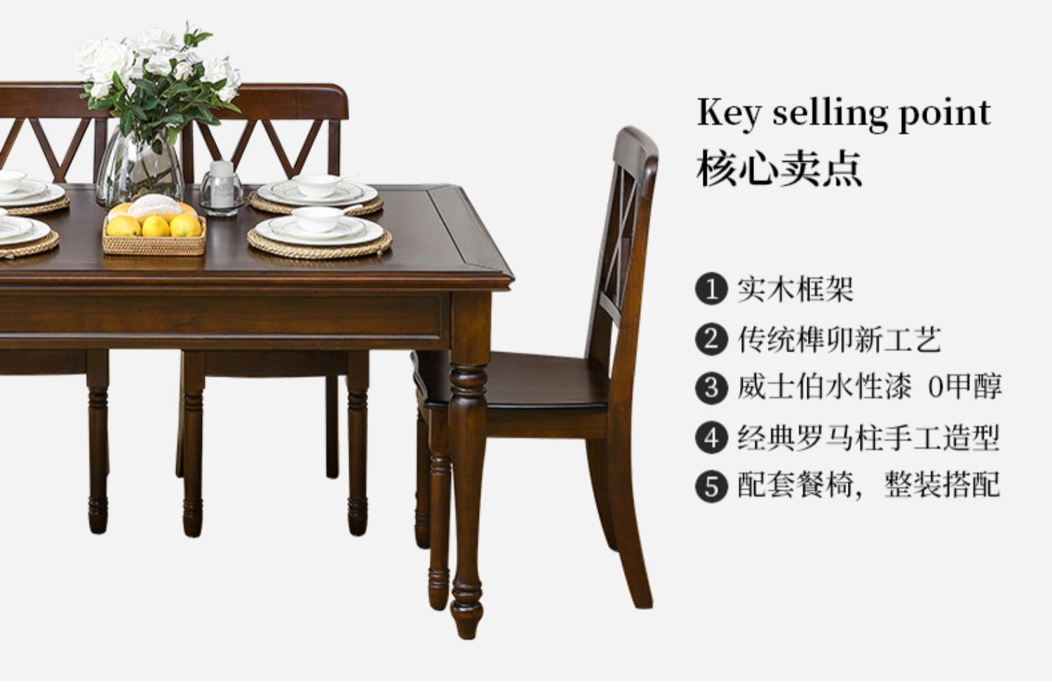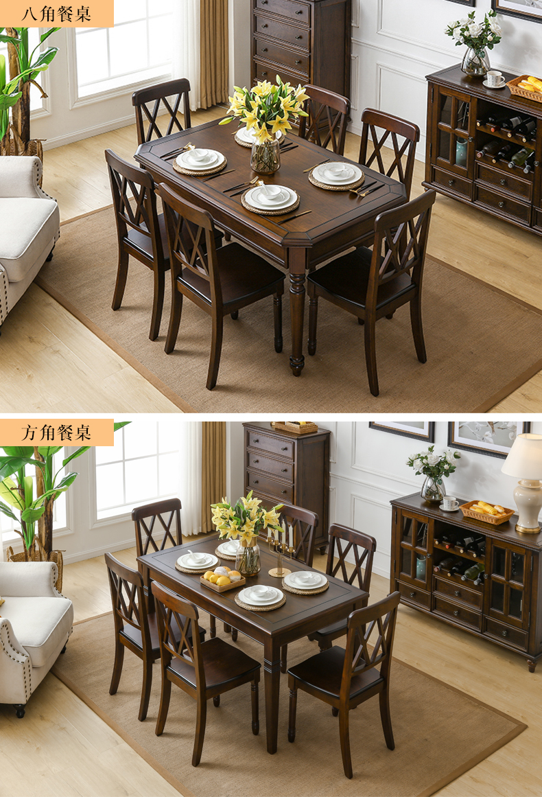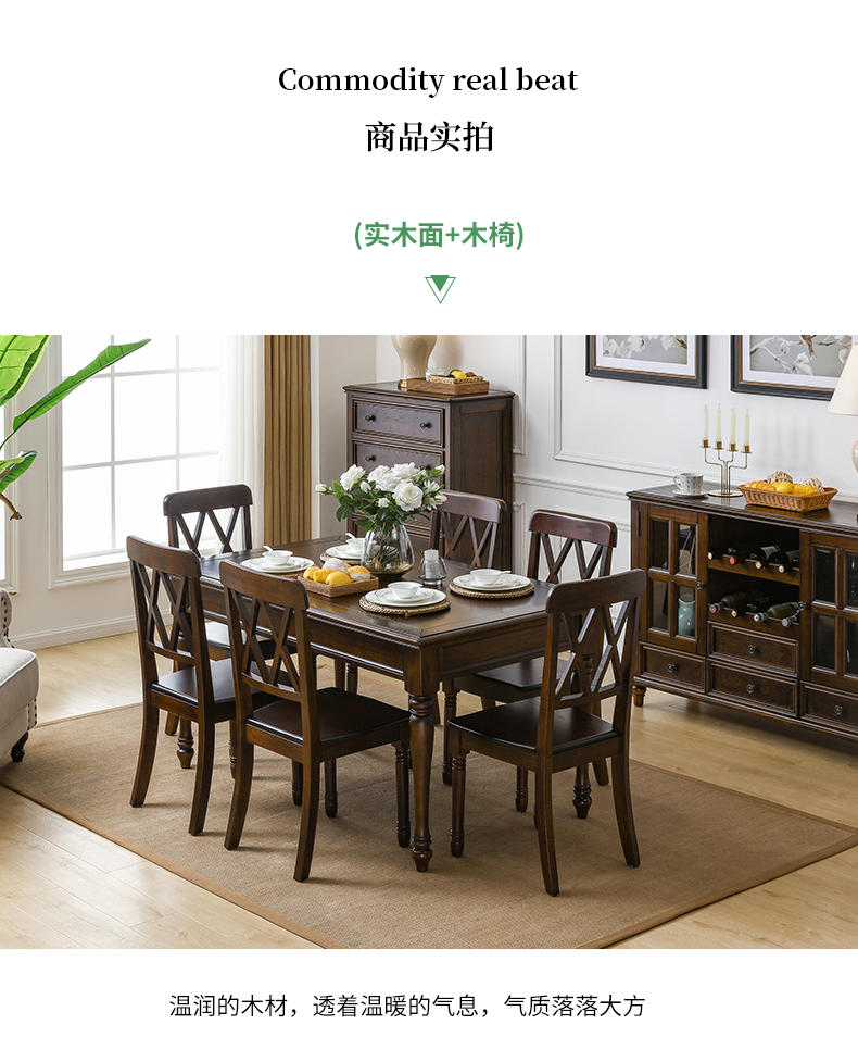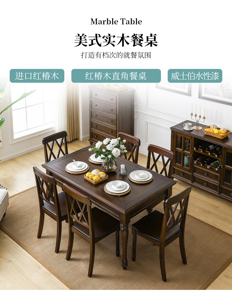 Bán buôn bàn ăn và ghế kiểu Mỹ kết hợp gia đình đơn giản bàn ăn mục vụ hình chữ nhật bàn ăn gia đình bằng gỗ nguyên khối là sản phẩm nổi bật trong dòng bàn ăn nhập khẩu, thiết kế hiện đại và sang trọng, phù hợp với nhiều không gian nội thất cao cấp.