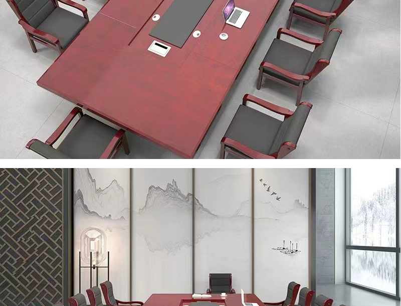 Bán buôn bàn hội nghị lớn bằng gỗ nguyên khối bàn dài bàn văn phòng phòng họp hình bầu dục đàm phán bàn ghế kết hợp