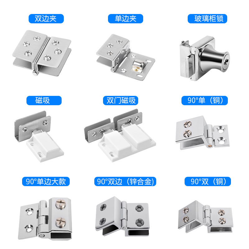 Bán buôn bản lề kính bằng thép không gỉ trên và dưới bản lề cửa kẹp lỗ miễn phí kính không khung cảm ứng từ tính phụ kiện bản lề cửa tủ