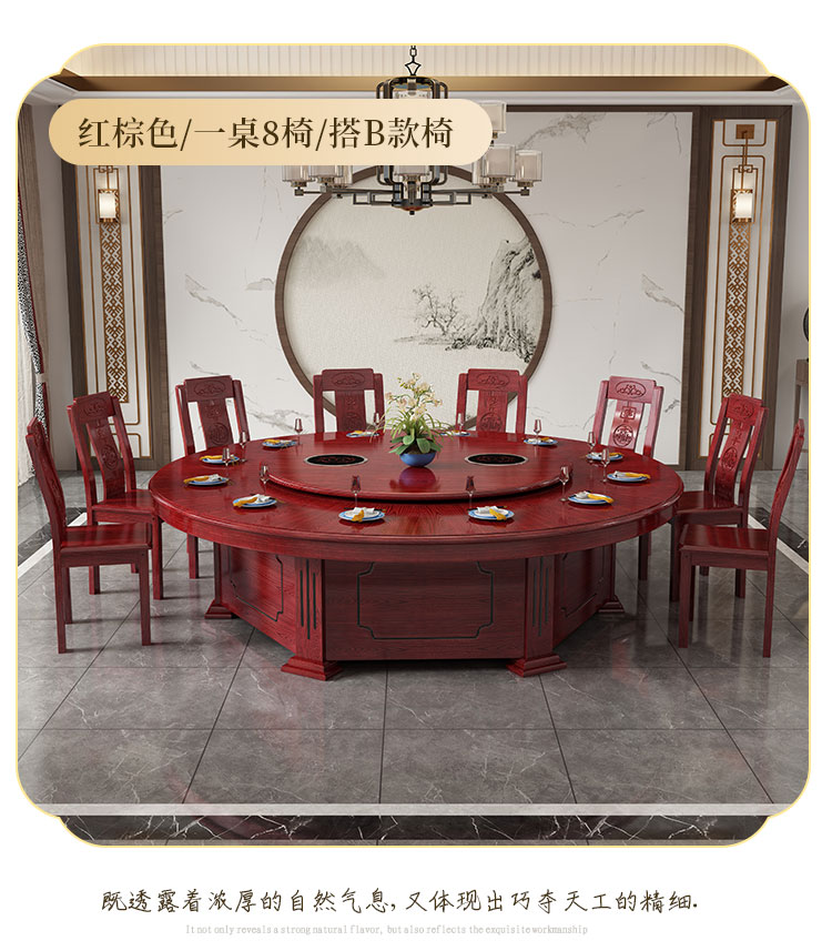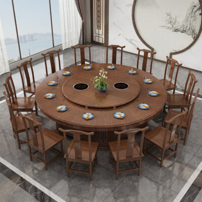 Bán buôn Bàn xoay điện khách sạn kết hợp ghế nhà hàng 10 người 20 người tiệc lẩu bàn gỗ đặc xoay vòng tròn lớn tự động – Bàn ăn nhập khẩu cao cấp