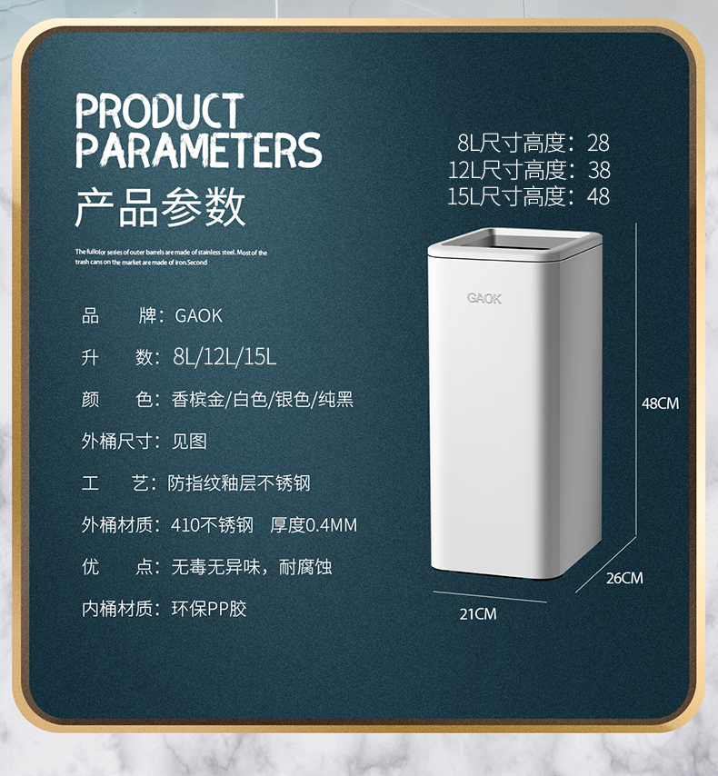 Bán buôn đèn phòng khách thùng rác inox sang trọng nhà bếp để bàn văn phòng đường may hẹp không có nắp nhà vệ sinh và phòng tắm thương mại
