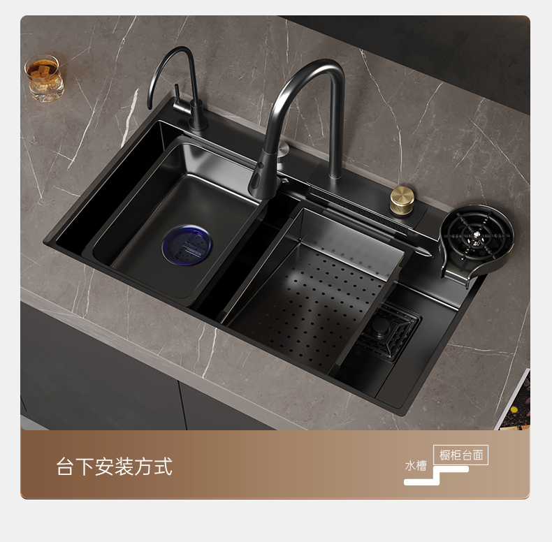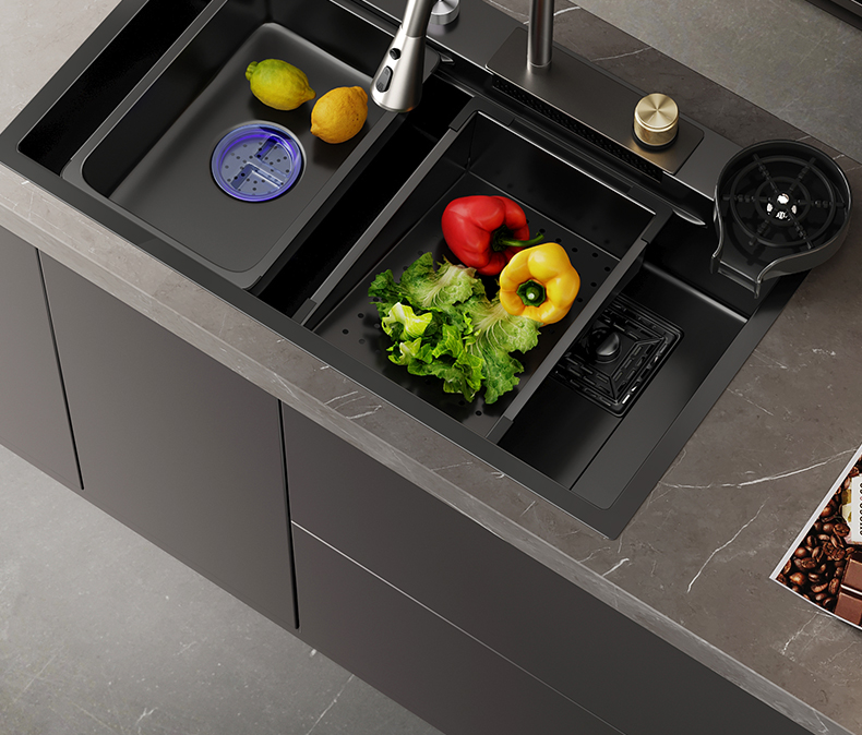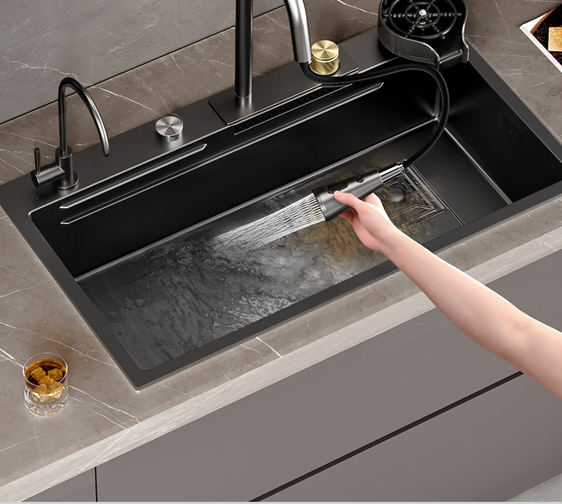 Bán buôn Đen Raindance Thác Nhà Bếp Bồn Rửa Inox Lớn Khe Cắm Đơn Undercounter 304 Rau Chậu Rửa Bồn Rửa Bộ là thiết bị nằm trong danh mục Đồ nhà hàng > Chậu rửa, được thiết kế chuyên dụng cho các nhà hàng cần sự tiện nghi và chuyên nghiệp.