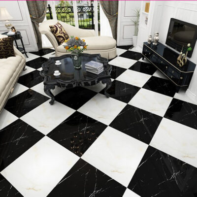 Bán buôn gạch men Phật Sơn 800*800 đen trắng gốc đánh bóng hoàn toàn bằng đá cẩm thạch tráng men lát sàn gạch đậm màu gạch đen đất