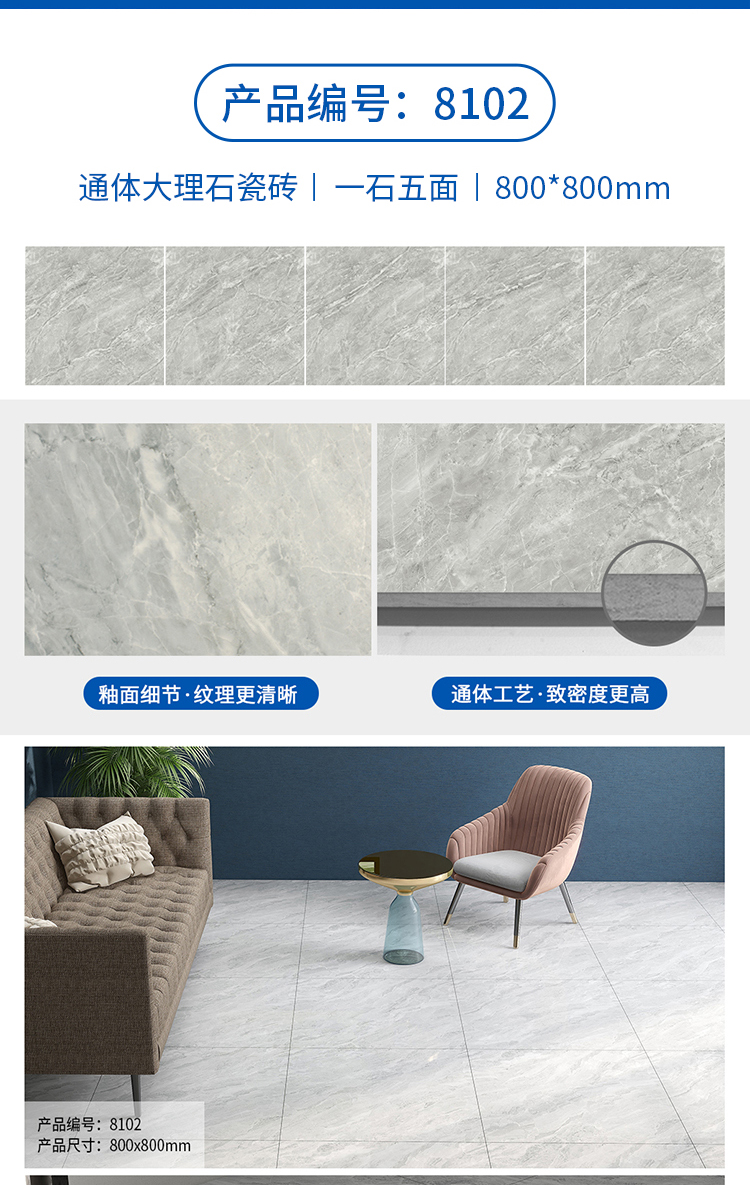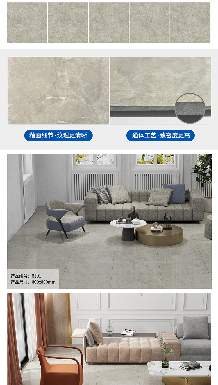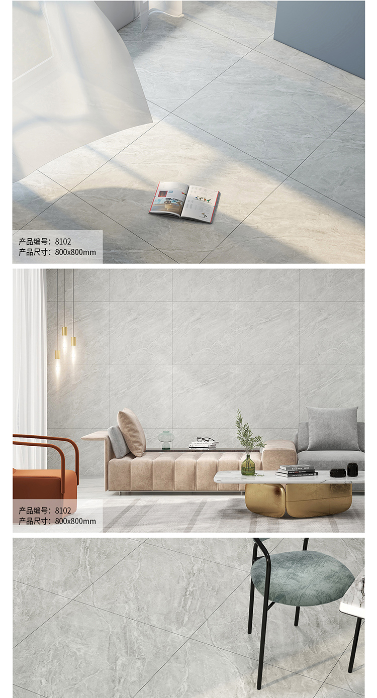 Bán buôn gạch Quảng Đông Phật Sơn phòng khách màu xám hoa văn liên tục 800×800 toàn thân bằng đá cẩm thạch lát sàn tráng men toàn sứ