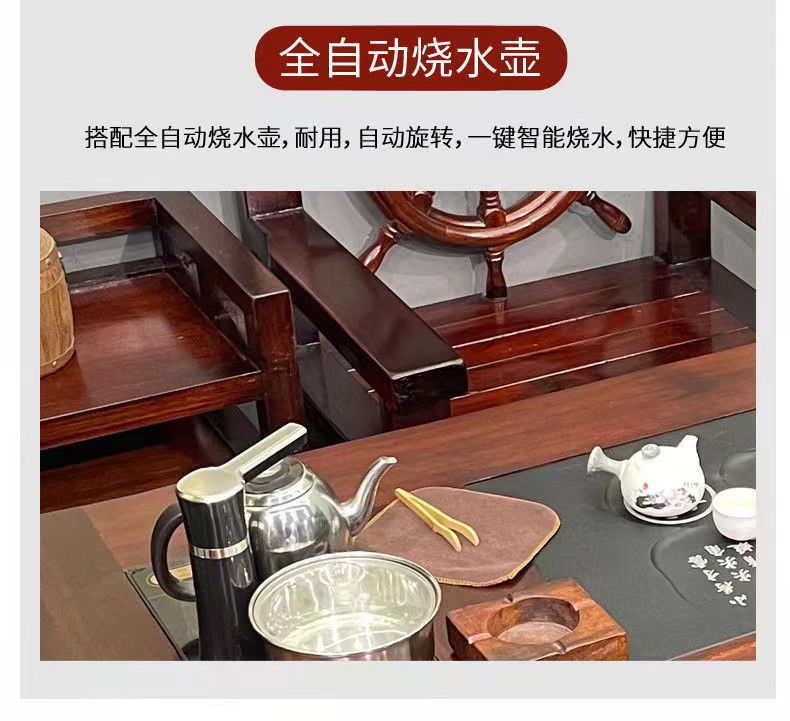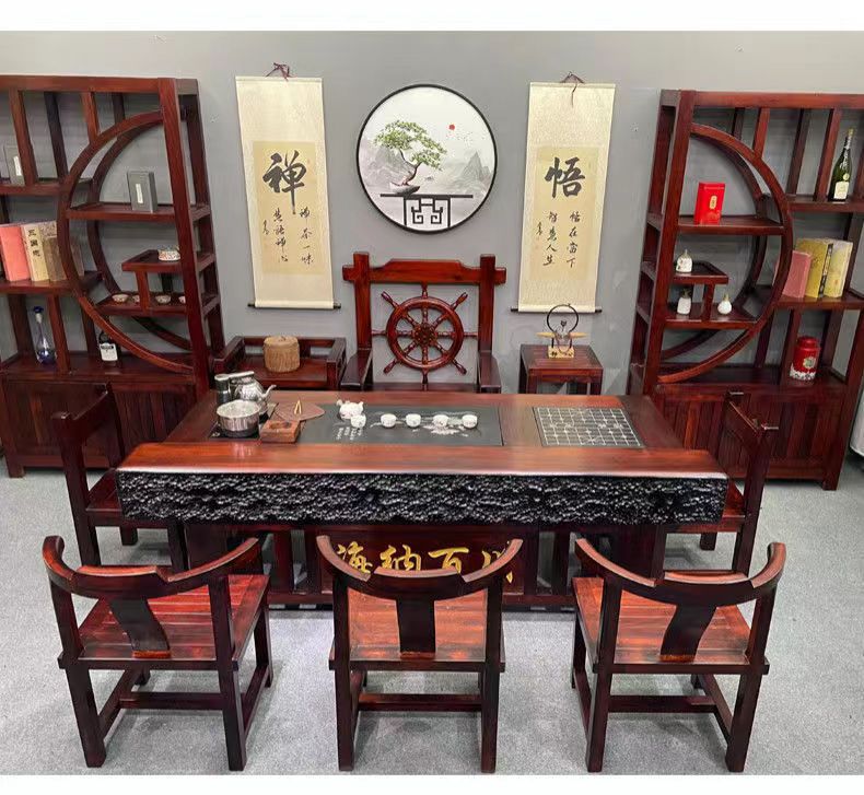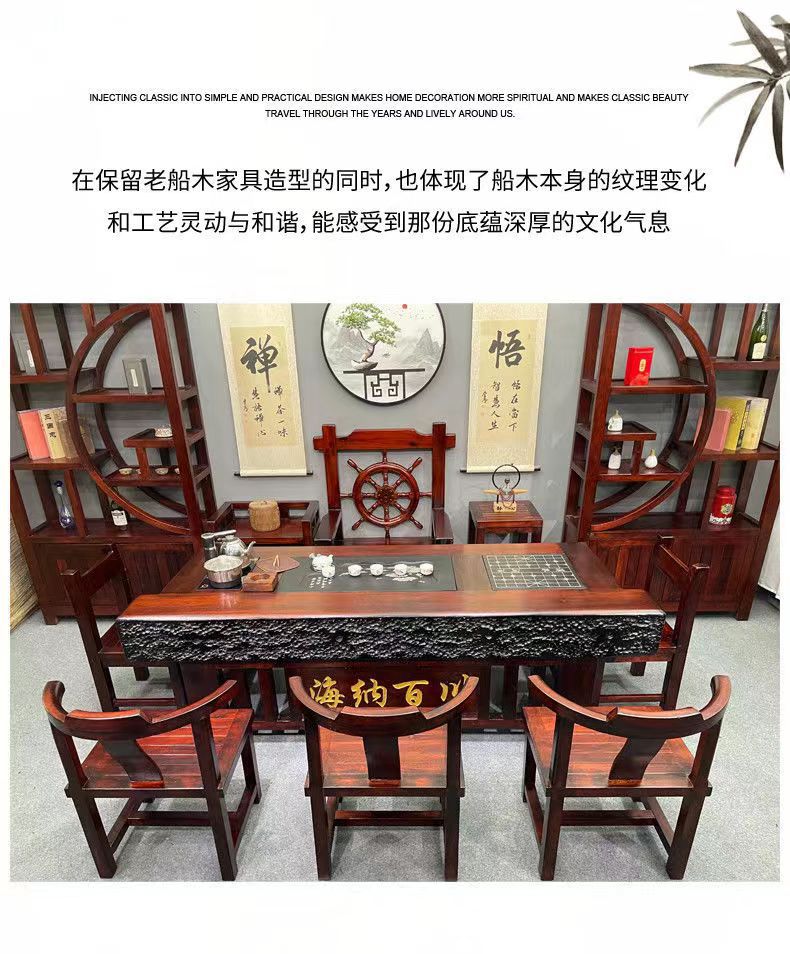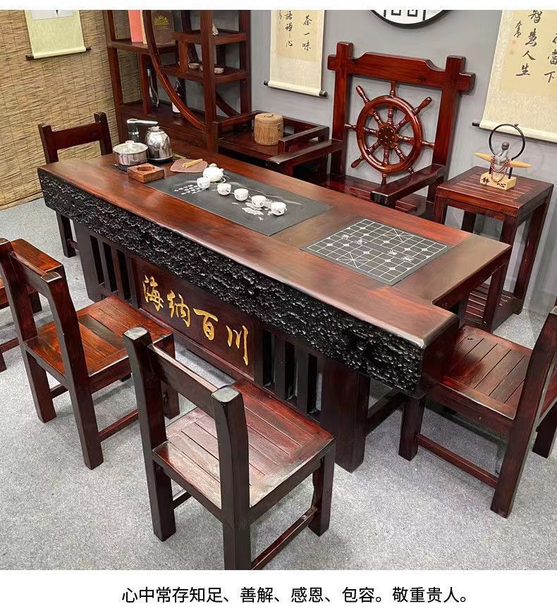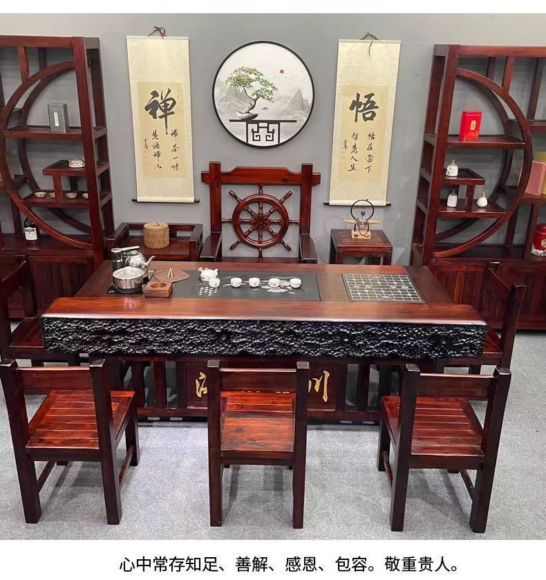 Bán buôn Gỗ thuyền Bàn trà gỗ và ghế kết hợp phong cách Trung Quốc gỗ nguyên khối cổ kung fu Bàn trà và ghế văn phòng trọn bộ Bàn trà bàn cà phê