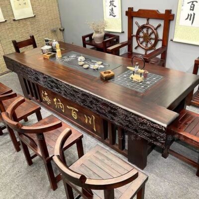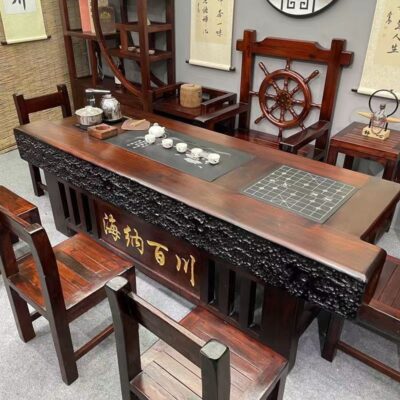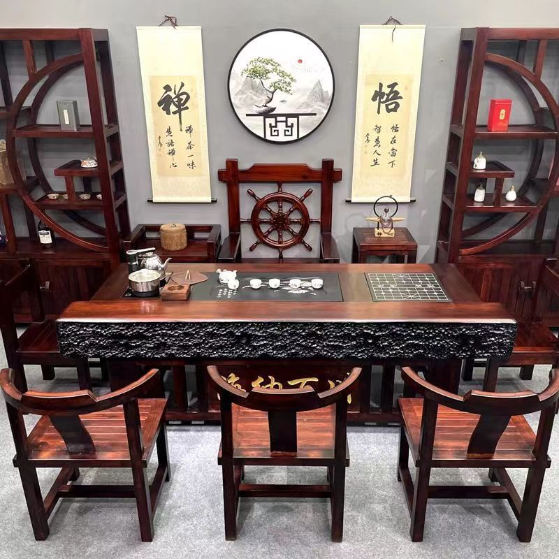 Bán buôn Gỗ thuyền Bàn trà gỗ và ghế kết hợp phong cách Trung Quốc gỗ nguyên khối cổ kung fu Bàn trà và ghế văn phòng trọn bộ Bàn trà bàn cà phê