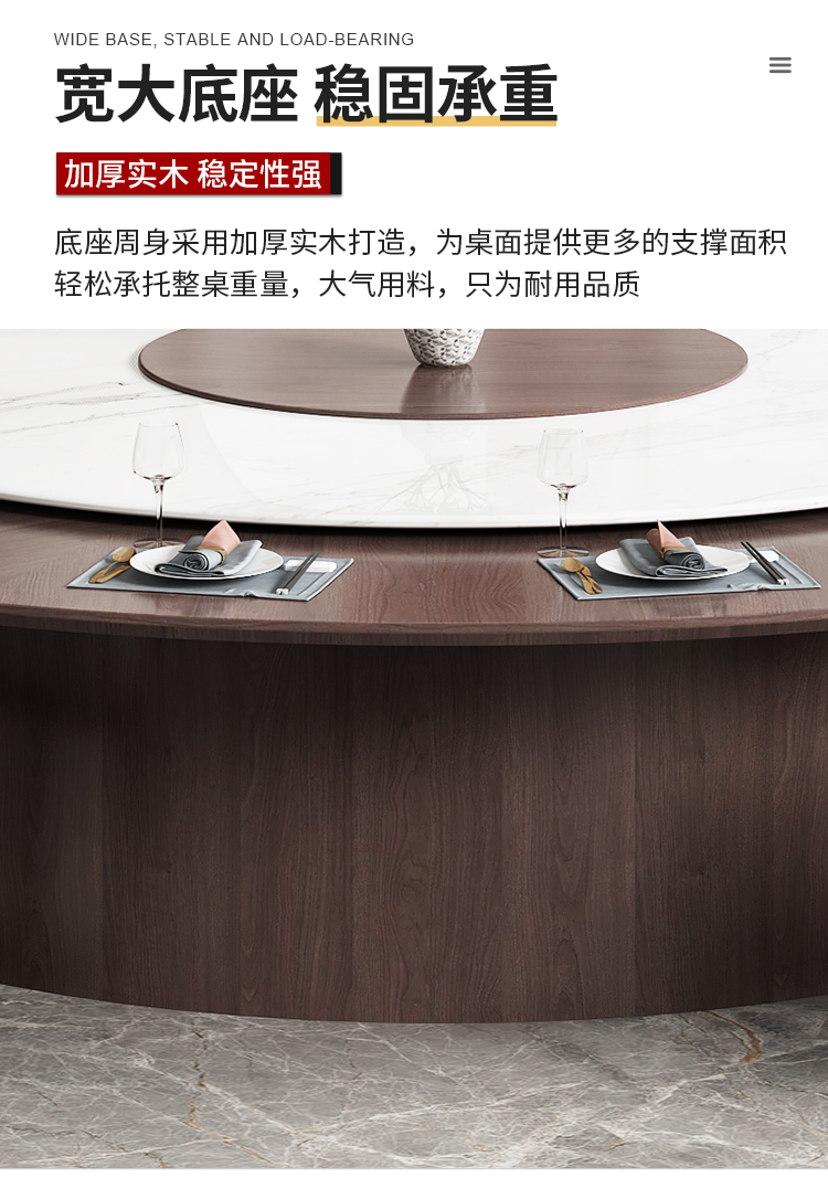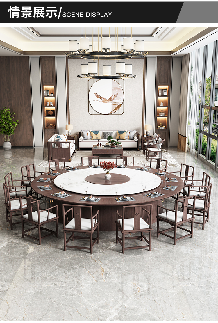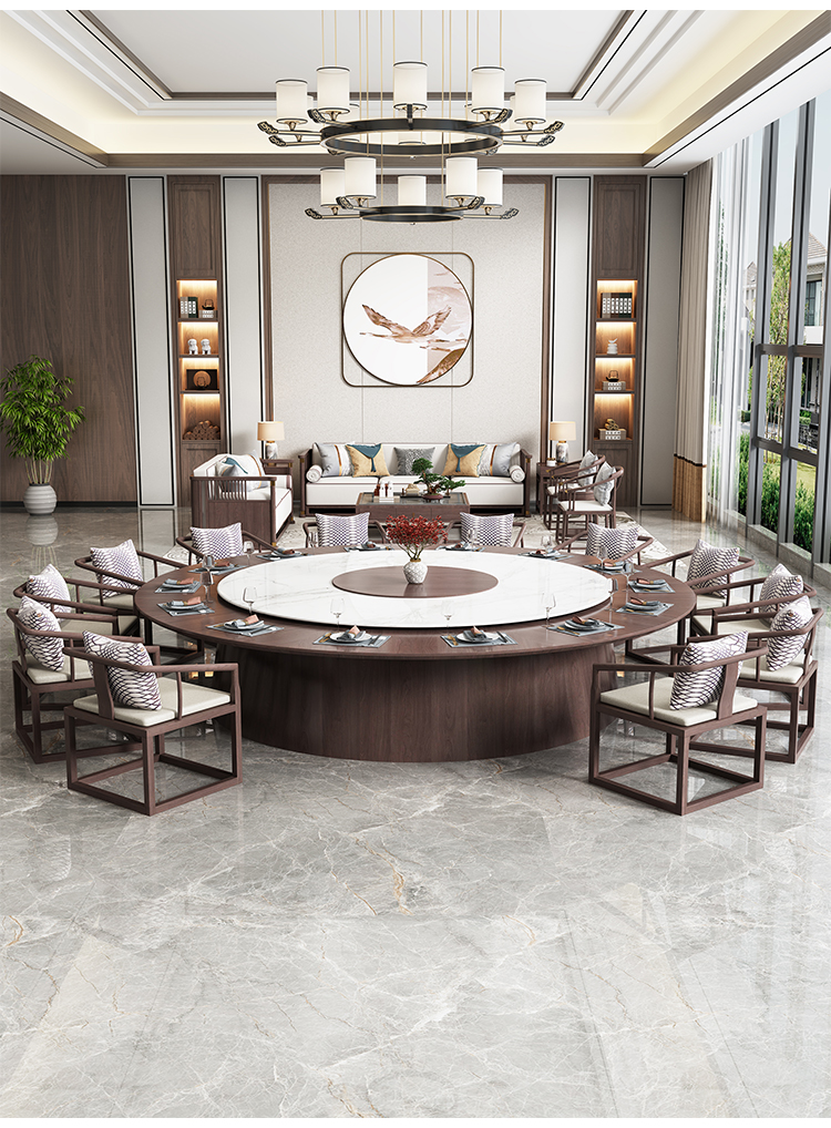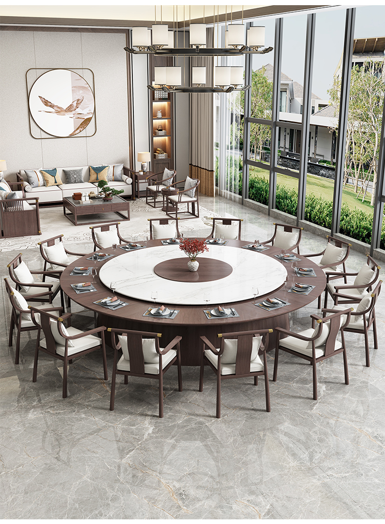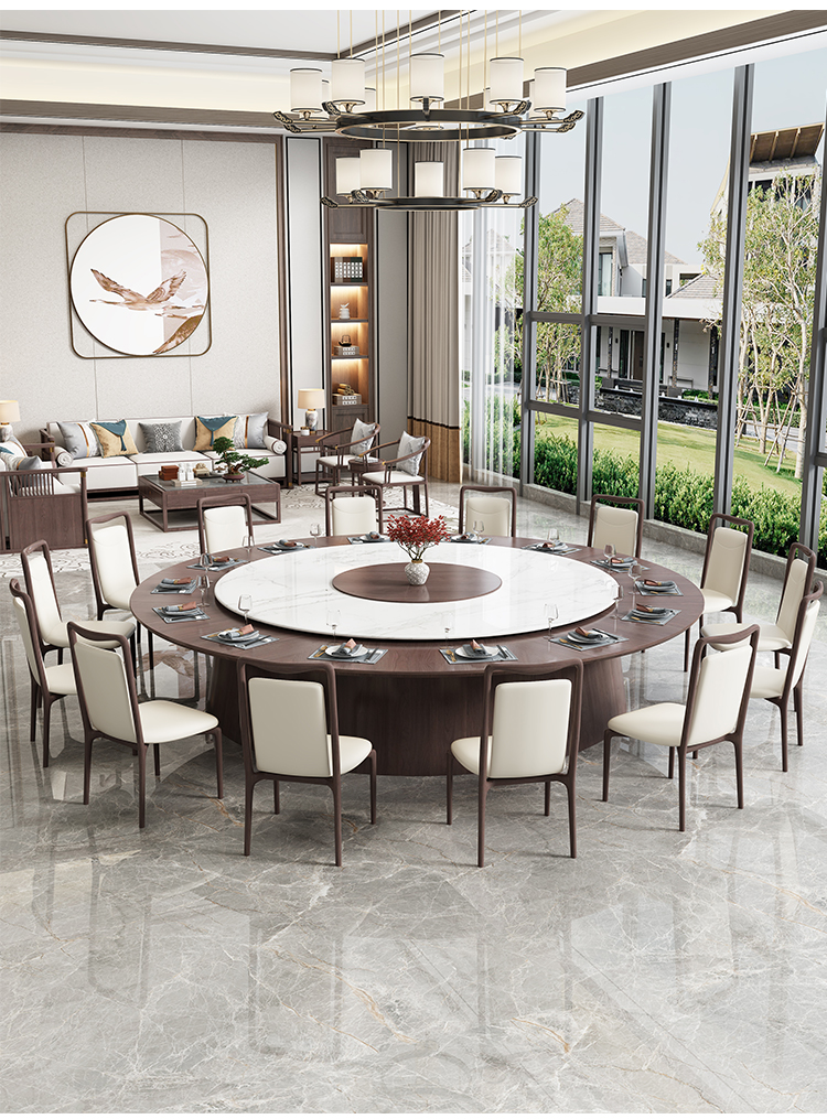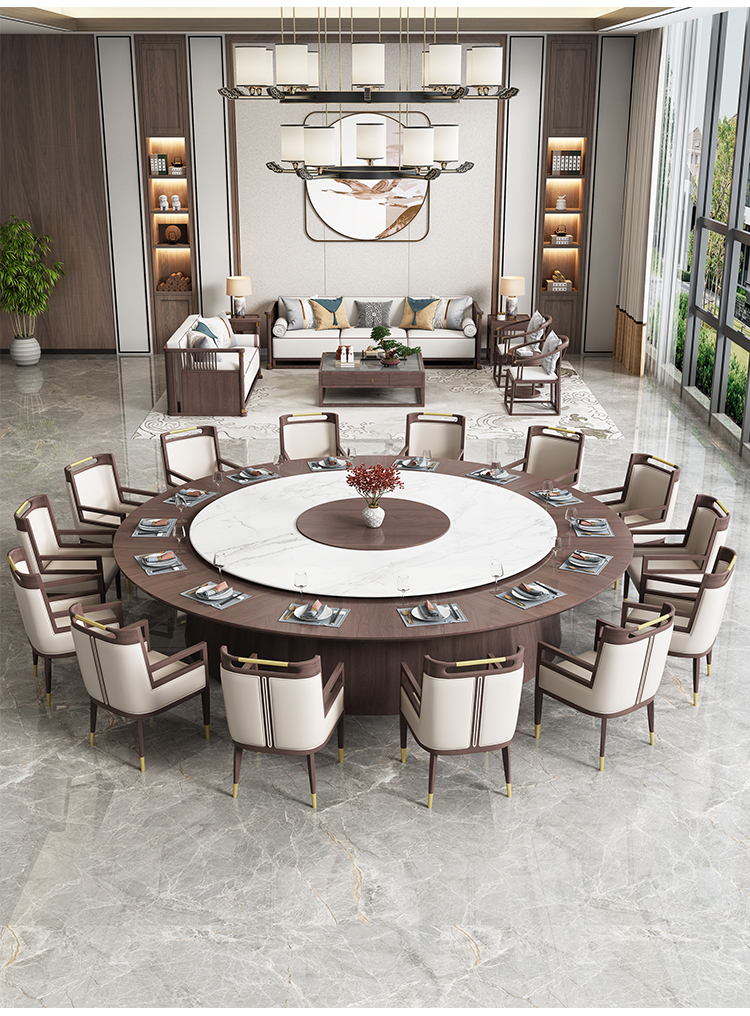 Bán buôn khách sạn bàn tròn lớn bàn ăn điện mới của Trung Quốc 15 người 20 người nhà hàng khách sạn hộp câu lạc bộ bàn ghế gỗ đặc là sản phẩm nổi bật trong dòng bàn ăn nhập khẩu, thiết kế hiện đại và sang trọng, phù hợp với nhiều không gian nội thất cao cấp.