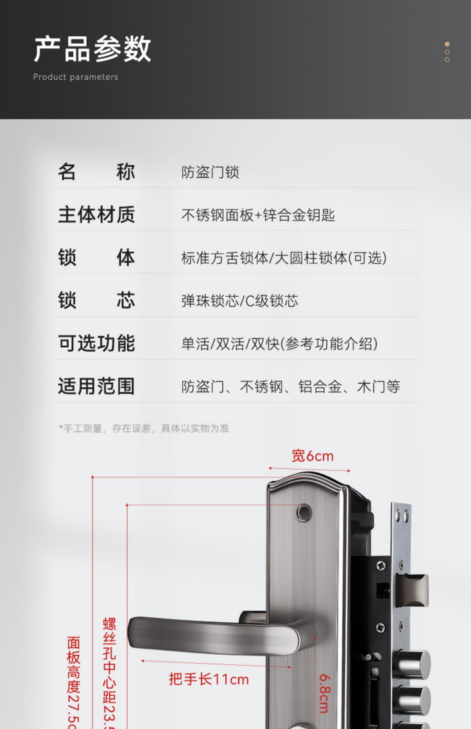 Bán buôn Khóa cửa chống trộm bộ khóa hộ gia đình tay nắm cửa chống trộm đa năng cửa sắt Khóa cửa gỗ loại lớn