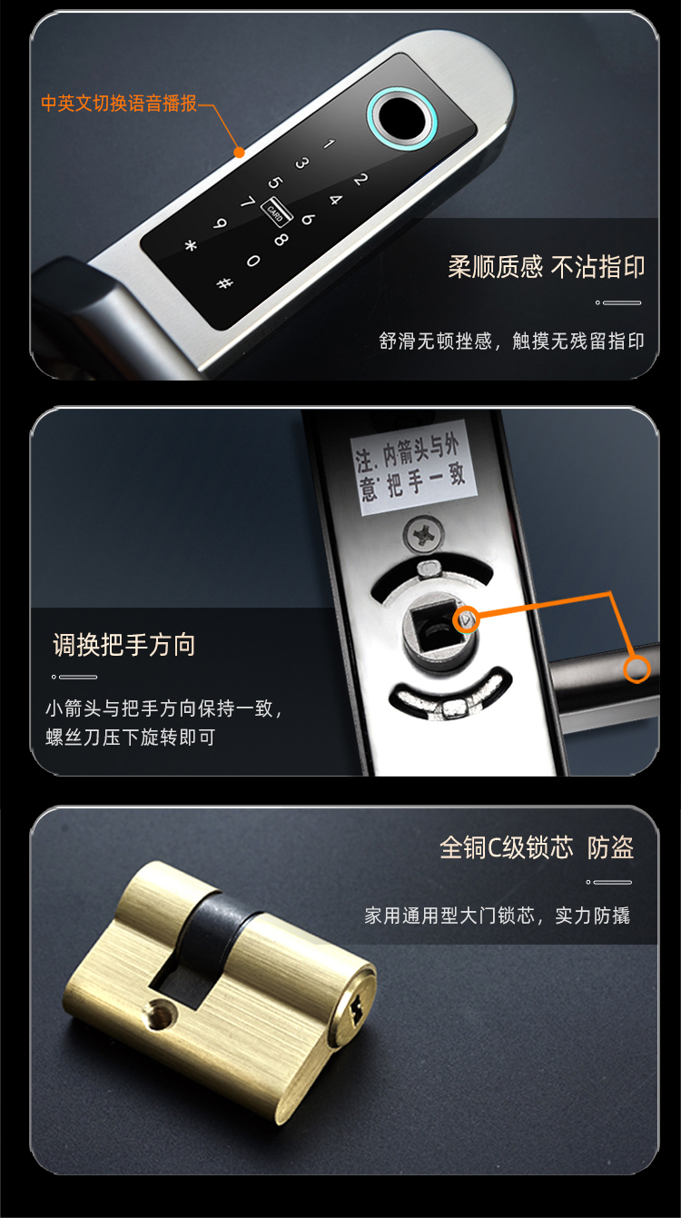 Bán buôn Khóa cửa cửa hợp kim nhôm khóa vân tay cửa trượt cửa xoay ban công cửa trượt khung cửa hẹp mật khẩu khóa thông minh