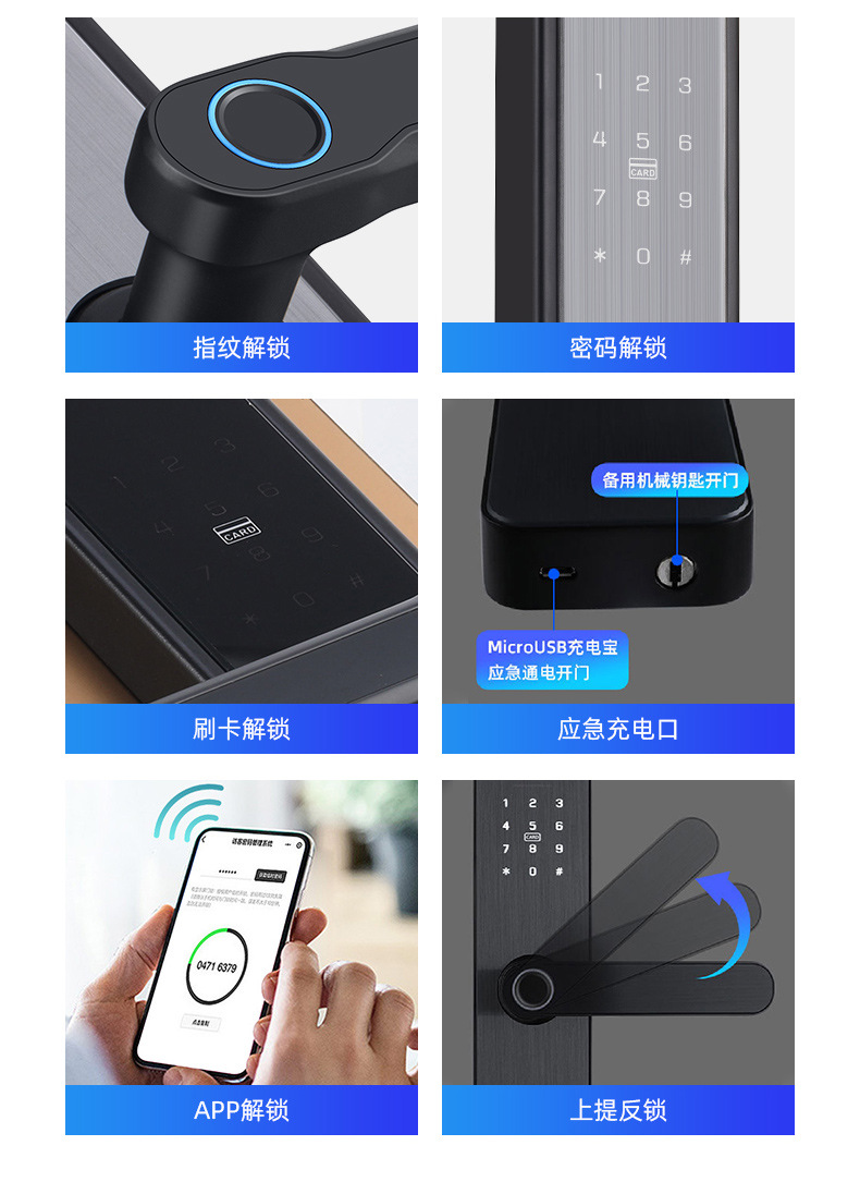 Bán Buôn Khóa Vân Tay Hộ Gia Đình Thông Minh Bluetooth Điện Tử Kết Hợp Khóa IC Khách Sạn Căn Hộ Khóa Cửa Điện Tử Khóa Cửa Thông Minh