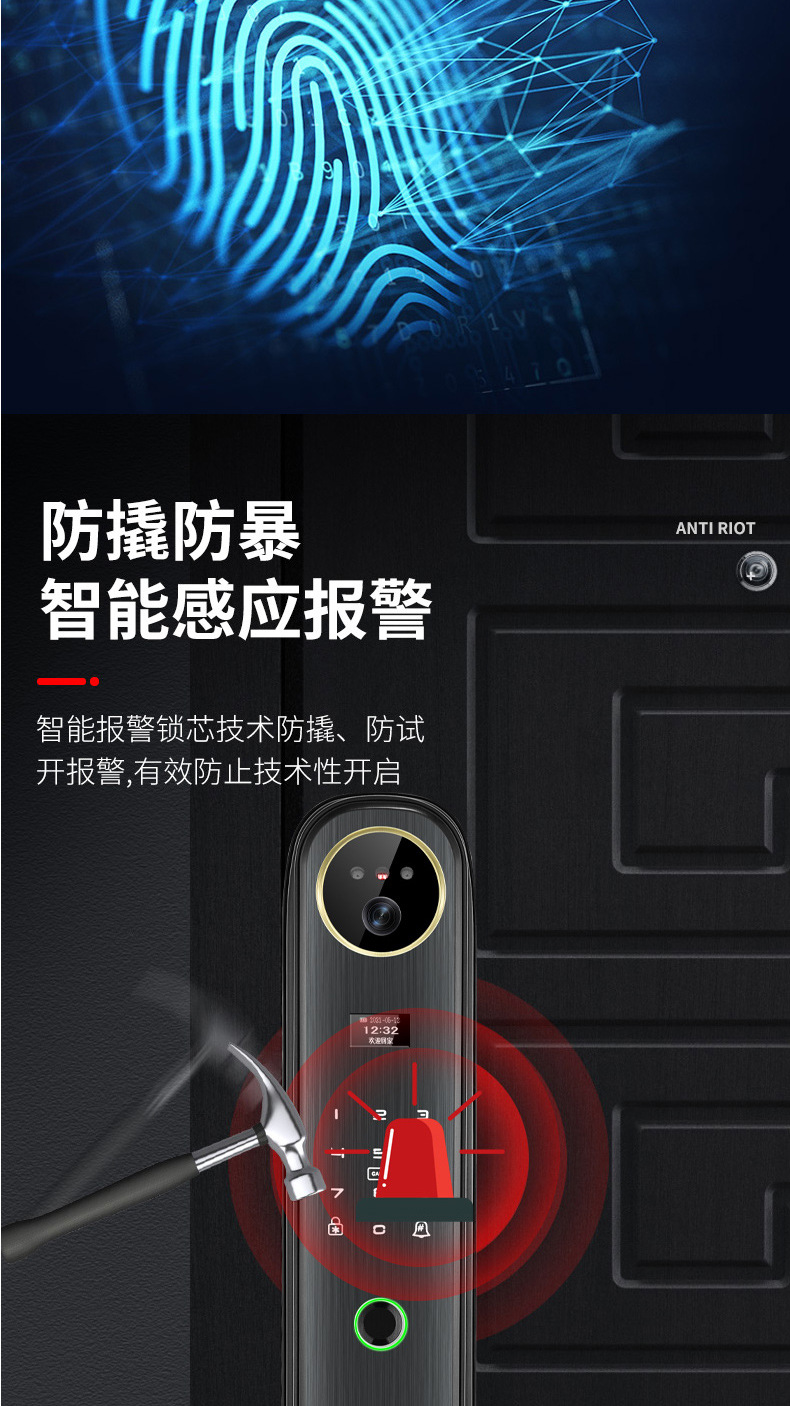 Bán buôn khóa vân tay tự động khóa cửa chống trộm nhận diện khuôn mặt khóa cửa thông minh trực quan khóa kết hợp điện tử mắt mèo