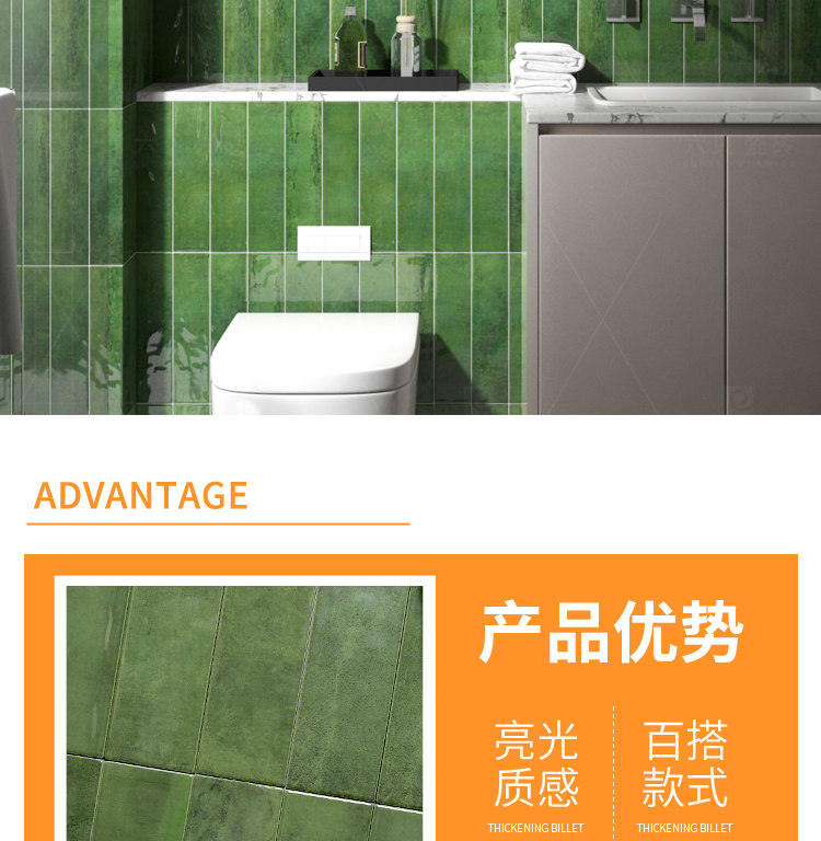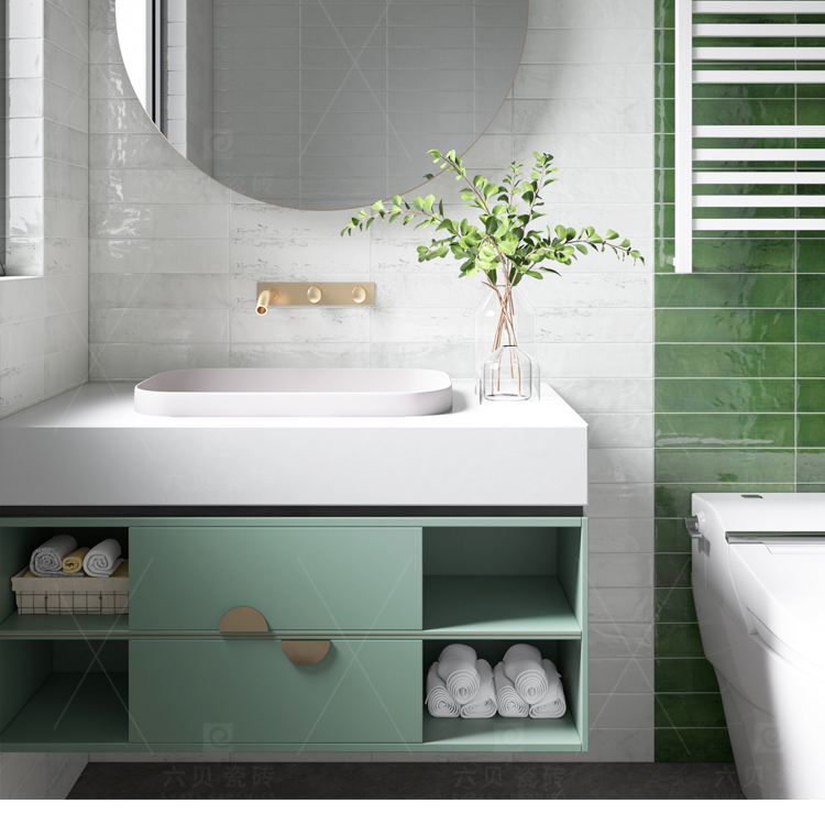 Bán buôn Liubei retro Pháp dải màu xanh lá cây gạch phòng tắm ban công nhà hàng gạch tường nhà bếp gạch nhà vệ sinh