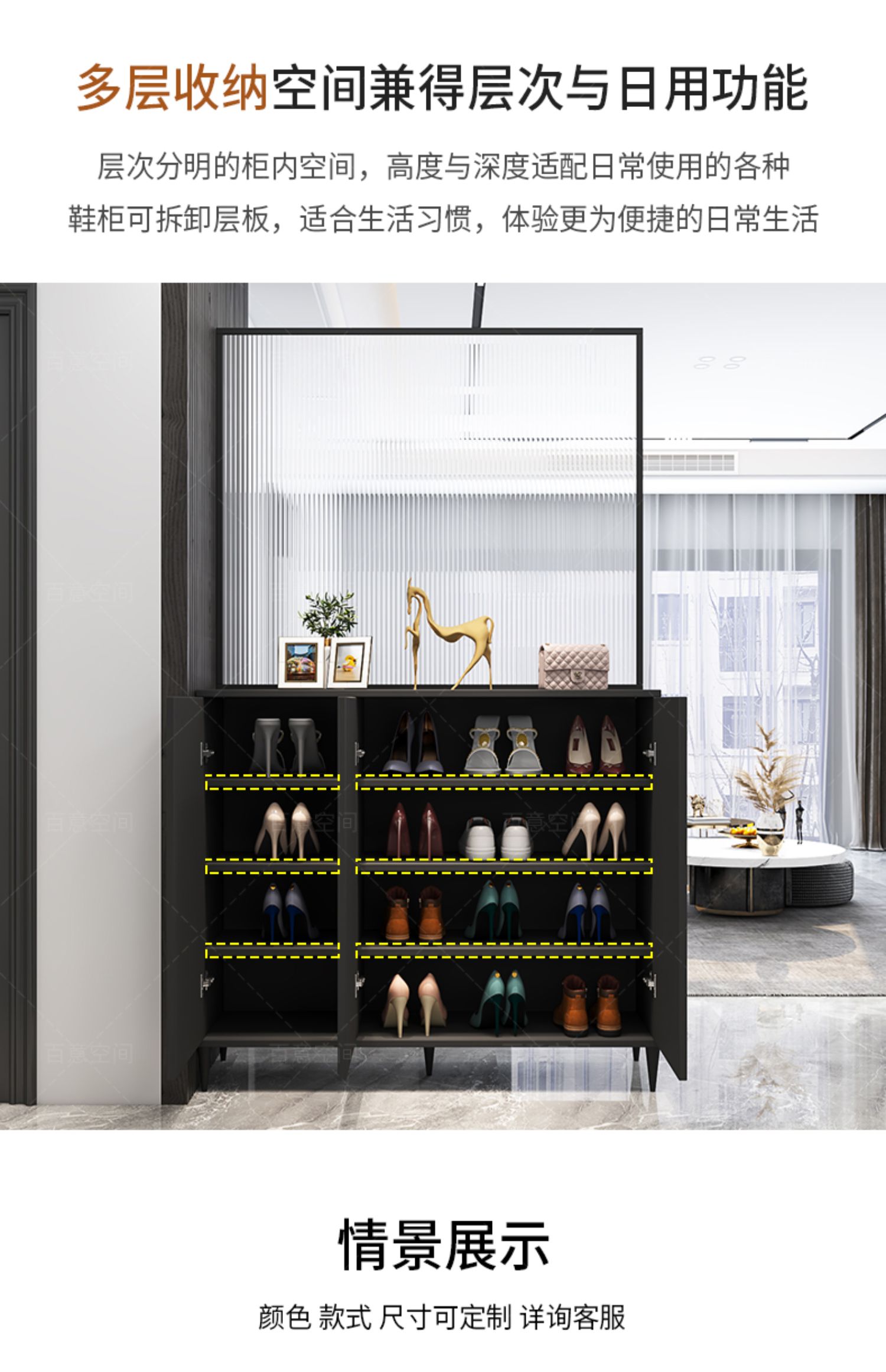 Bán buôn lối vào tủ giày tủ tích hợp phòng khách tối giản hiện đại vách ngăn tủ Đẹp màn hình kính sang trọng sảnh vào