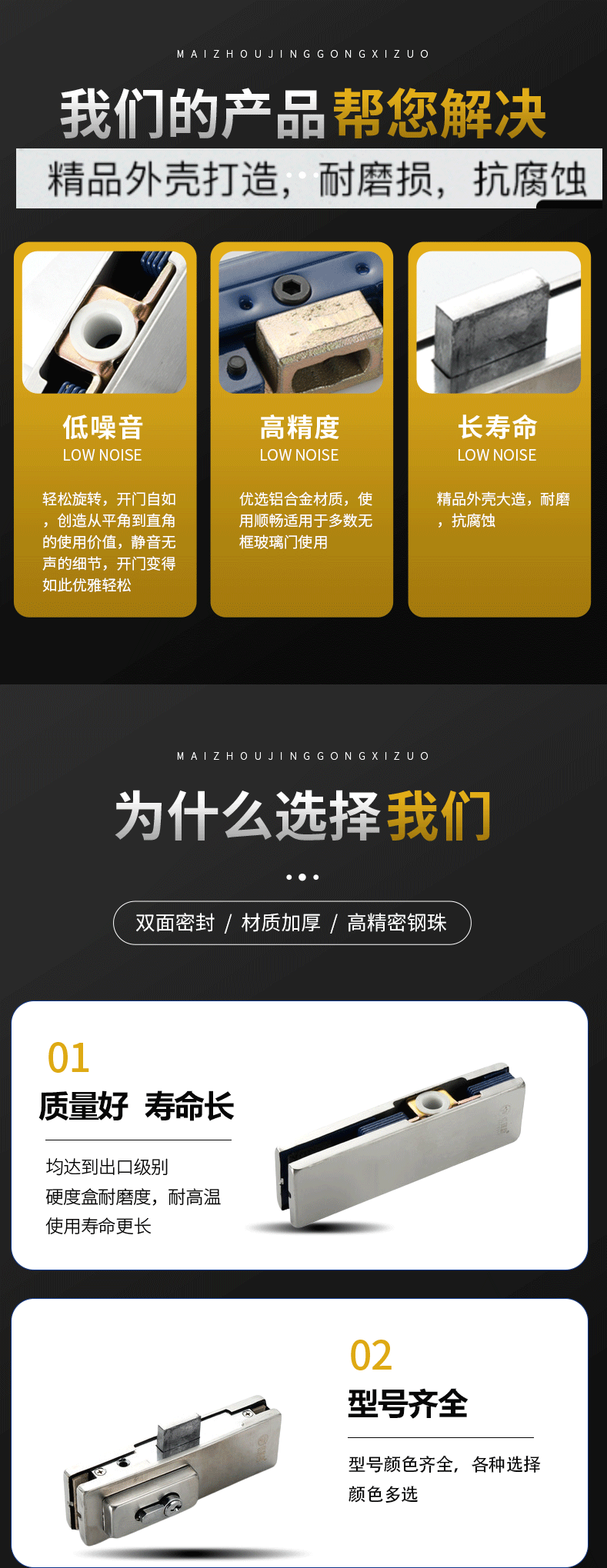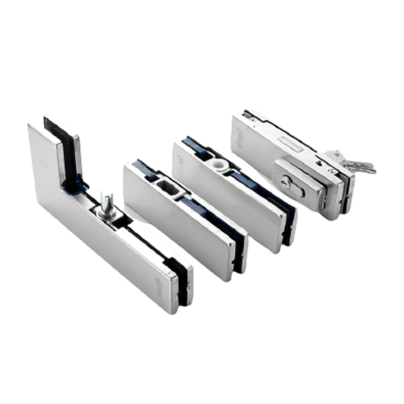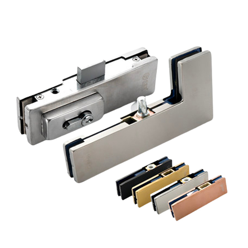 Bán buôn mặt đất lò xo cửa kẹp cửa kính trên và dưới phụ kiện cửa kính khung không khung cong kẹp cửa trượt cố định một