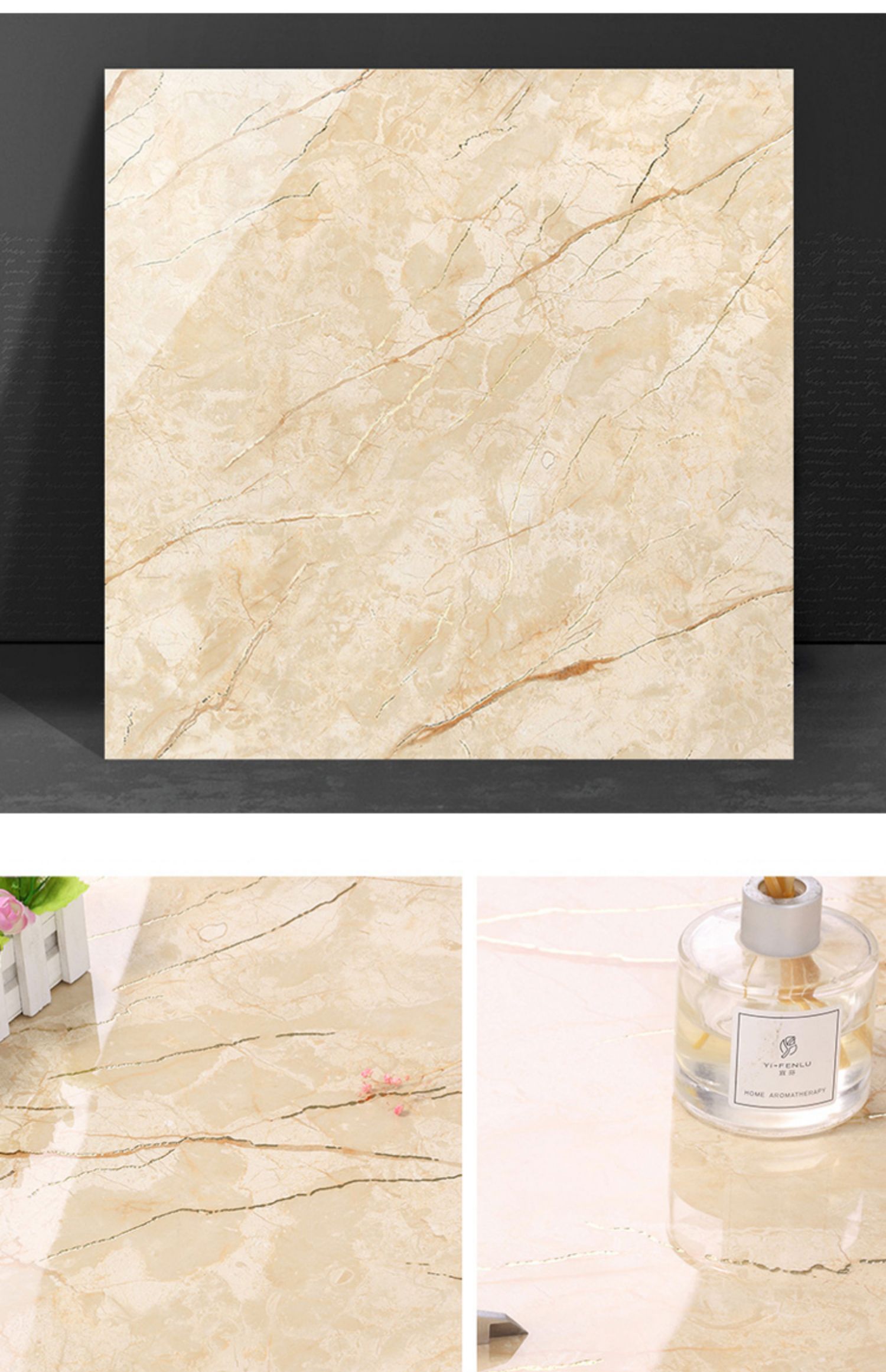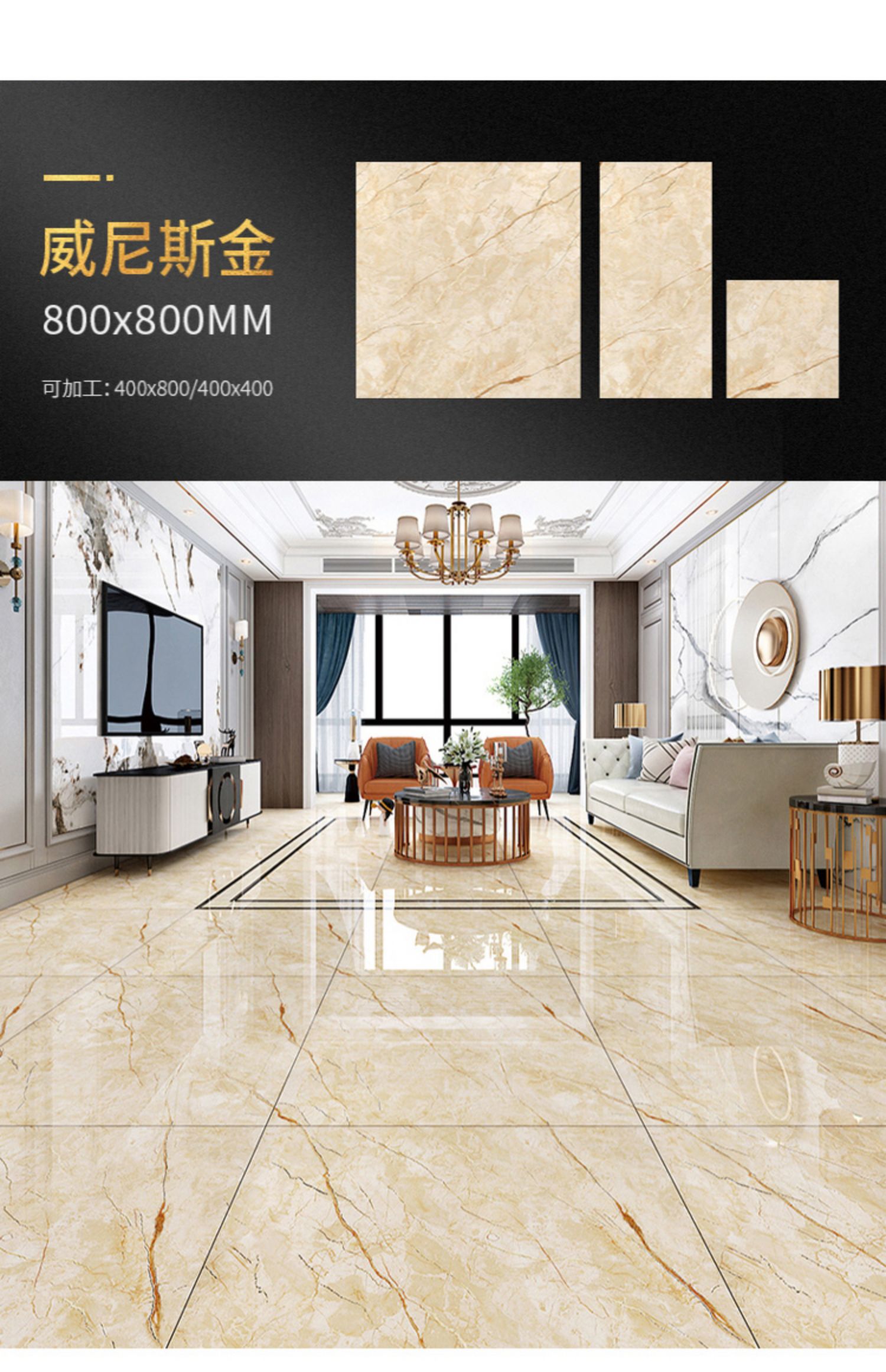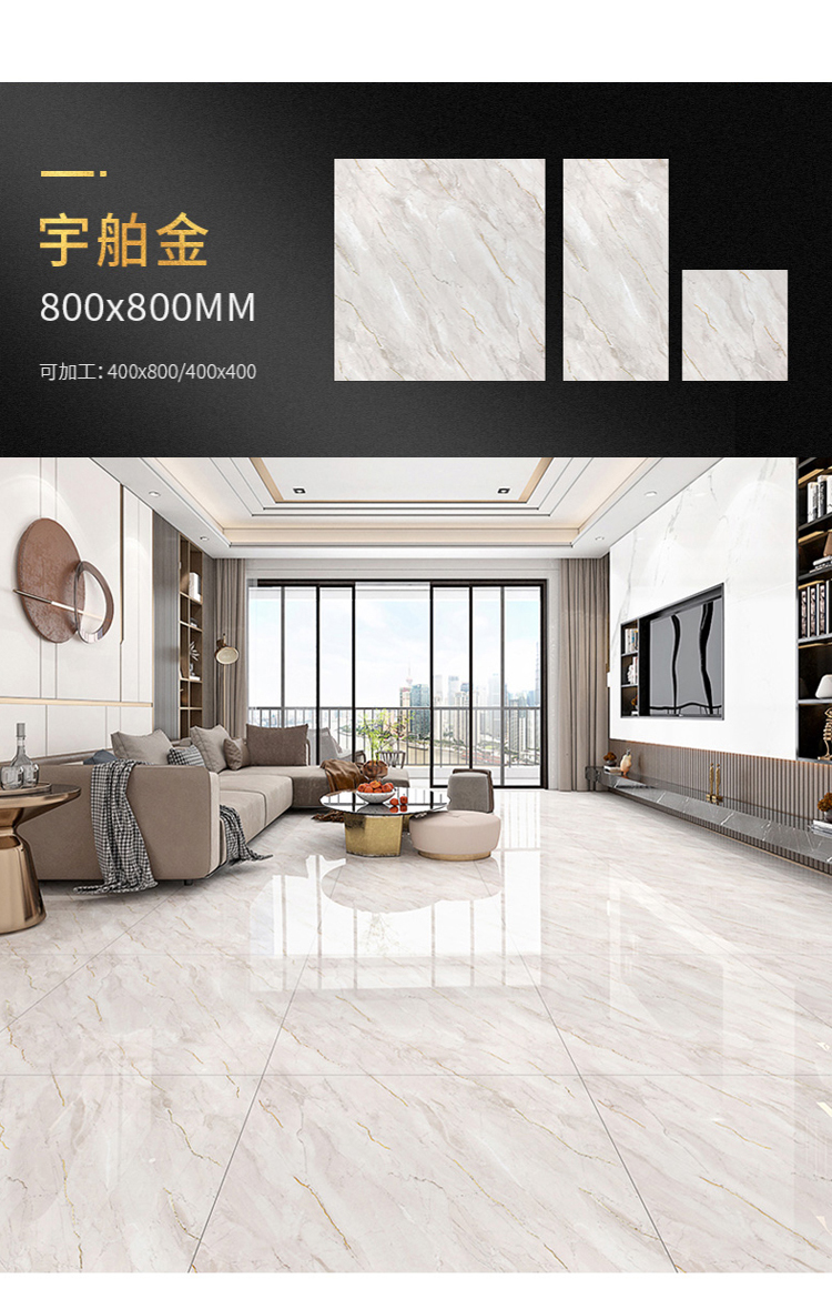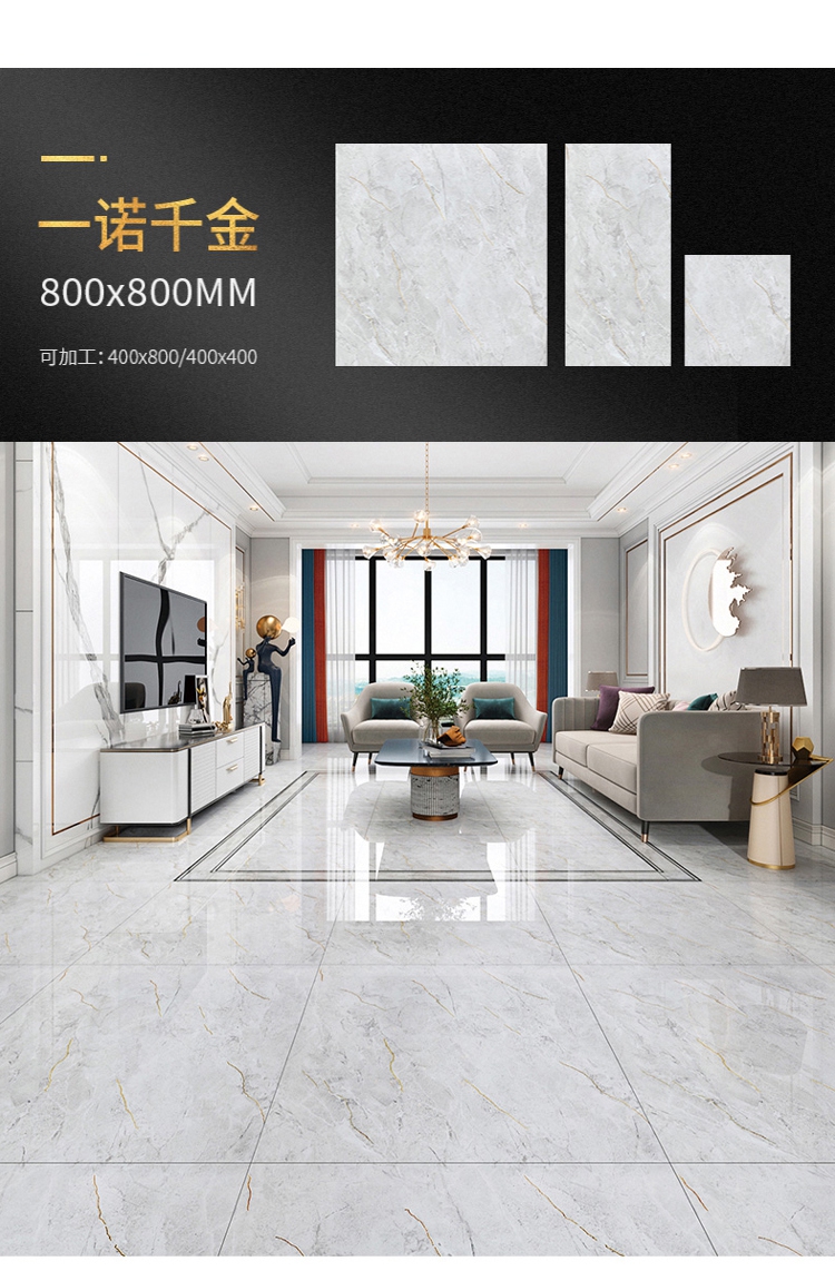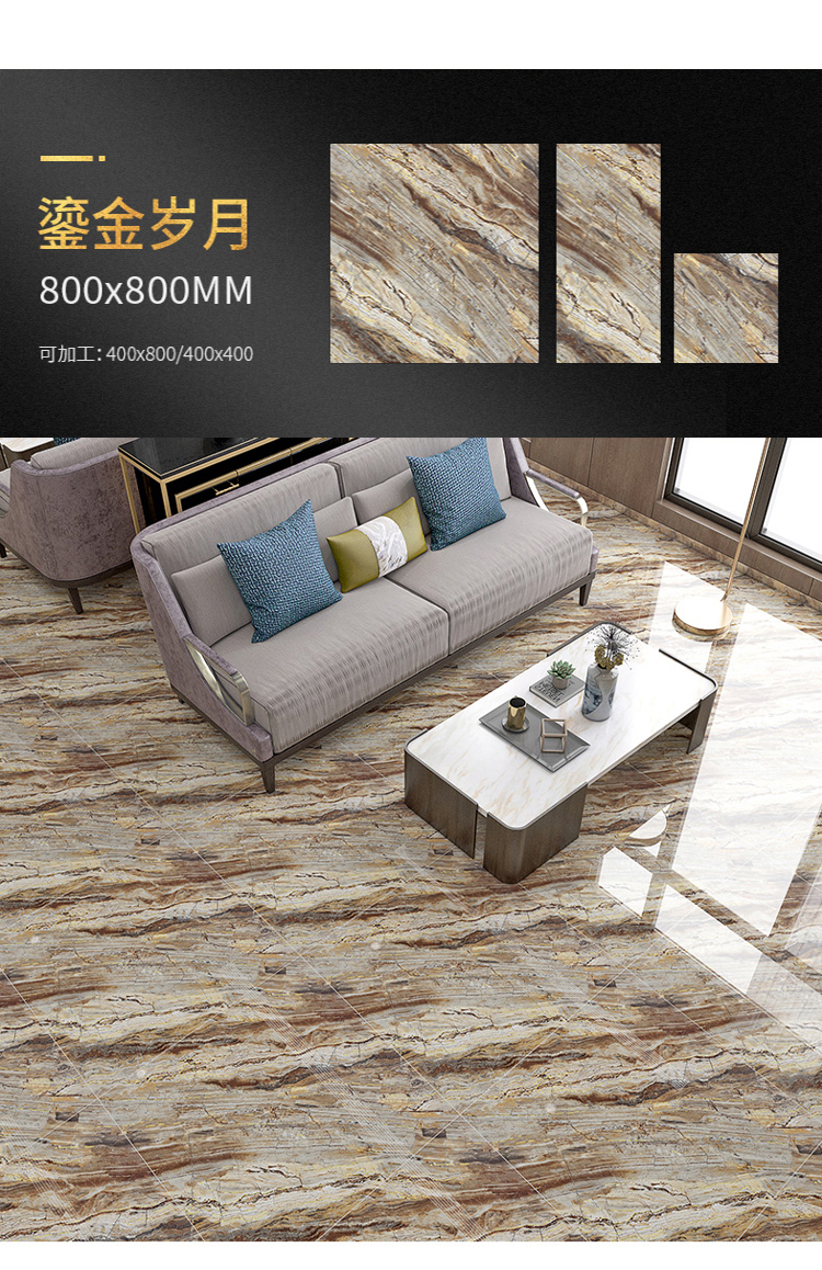 Bán buôn màu ấm vàng lụa tráng men toàn thân gạch đá cẩm thạch 800X800 phòng khách phòng ngủ chống trơn trượt lát sàn mạ vàng K vàng đất