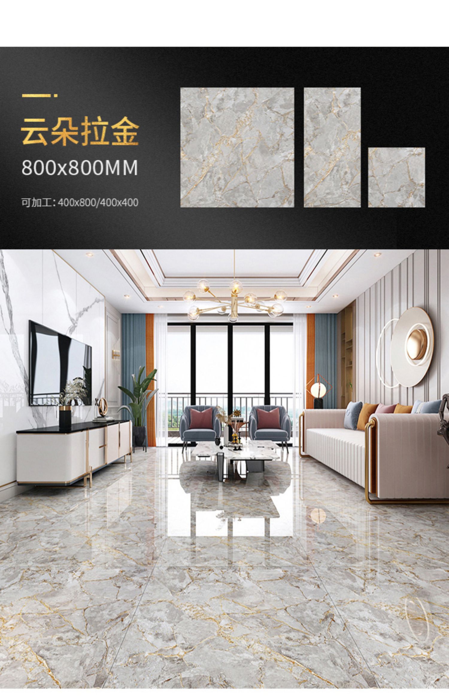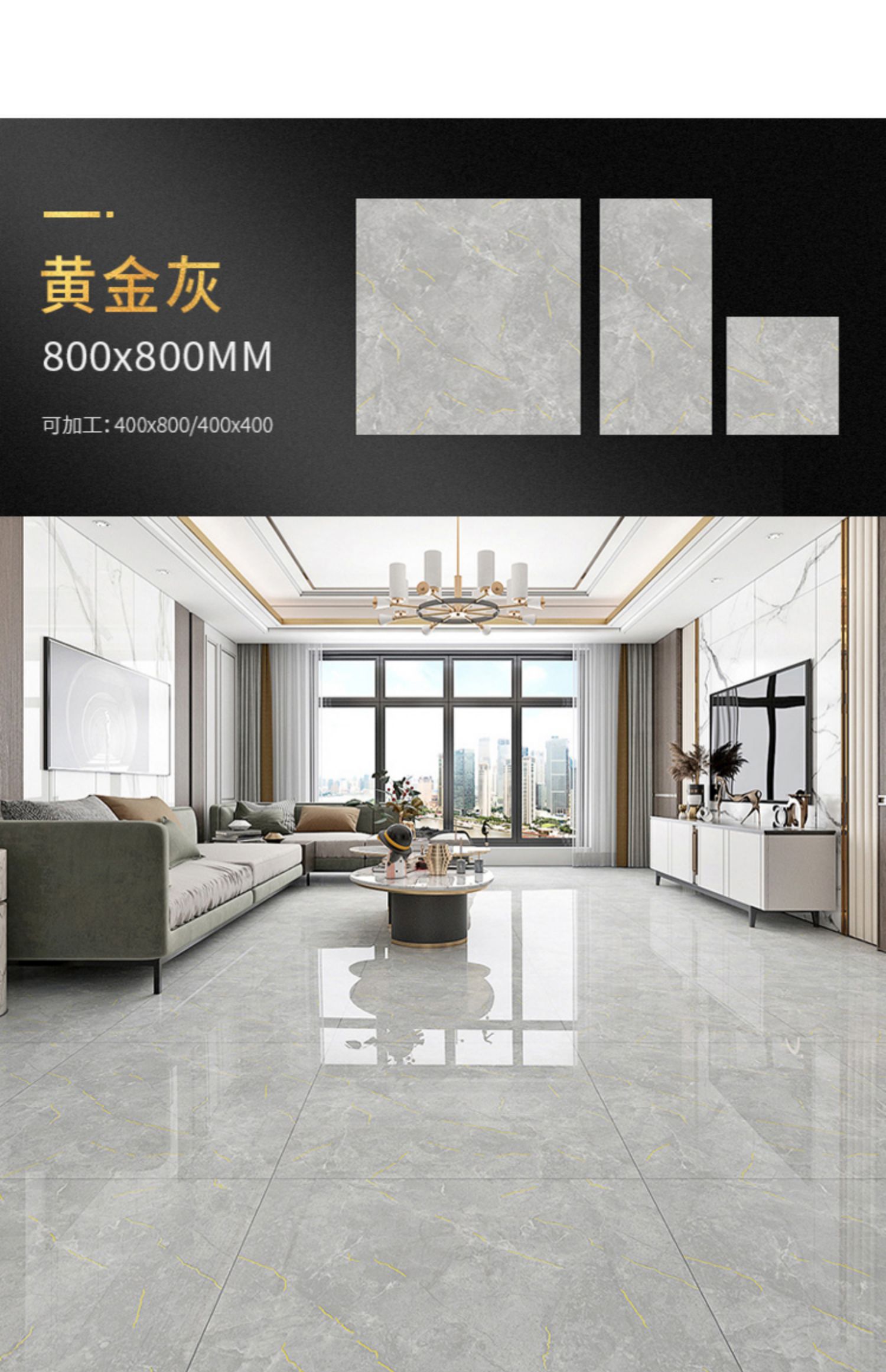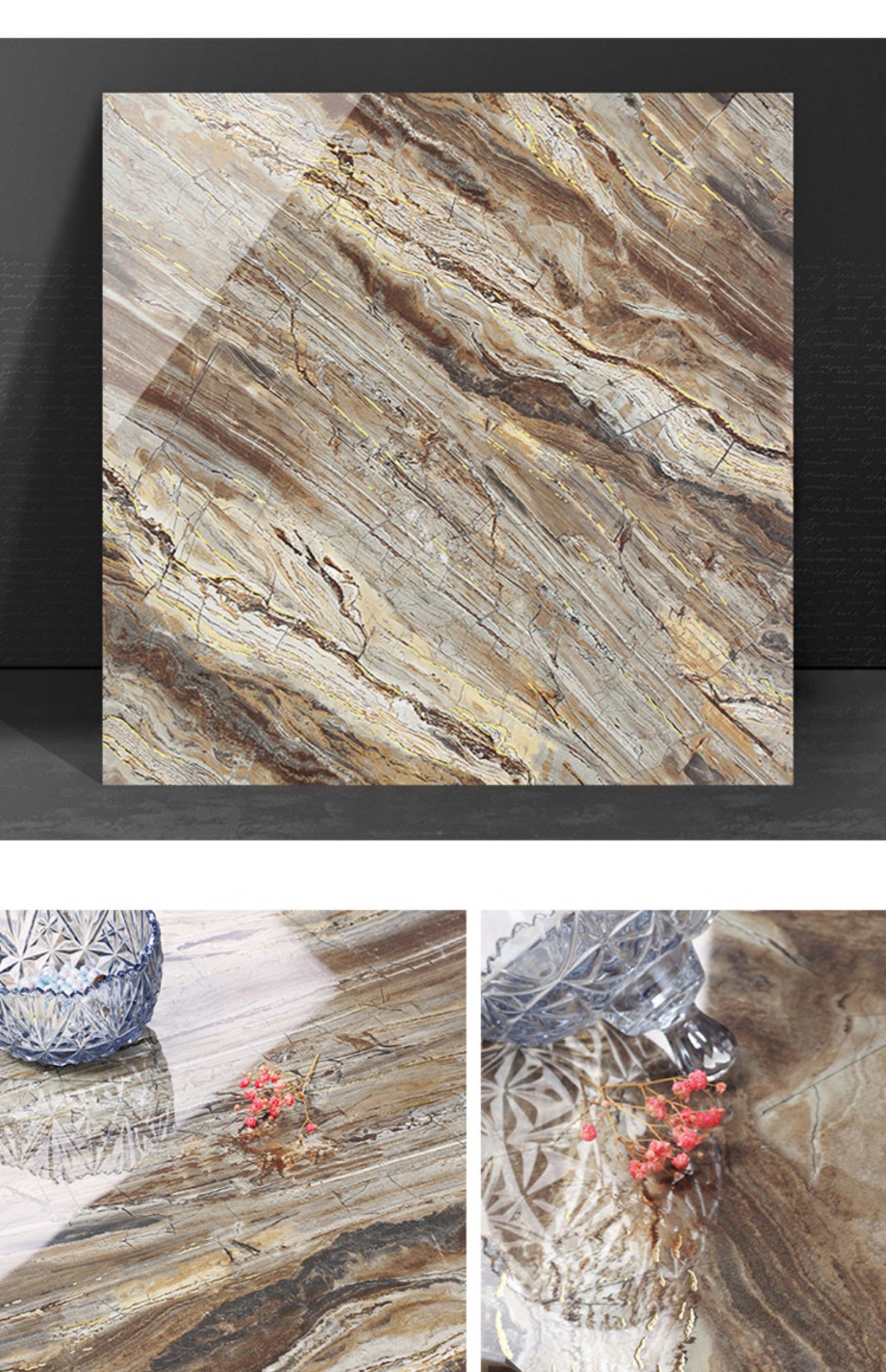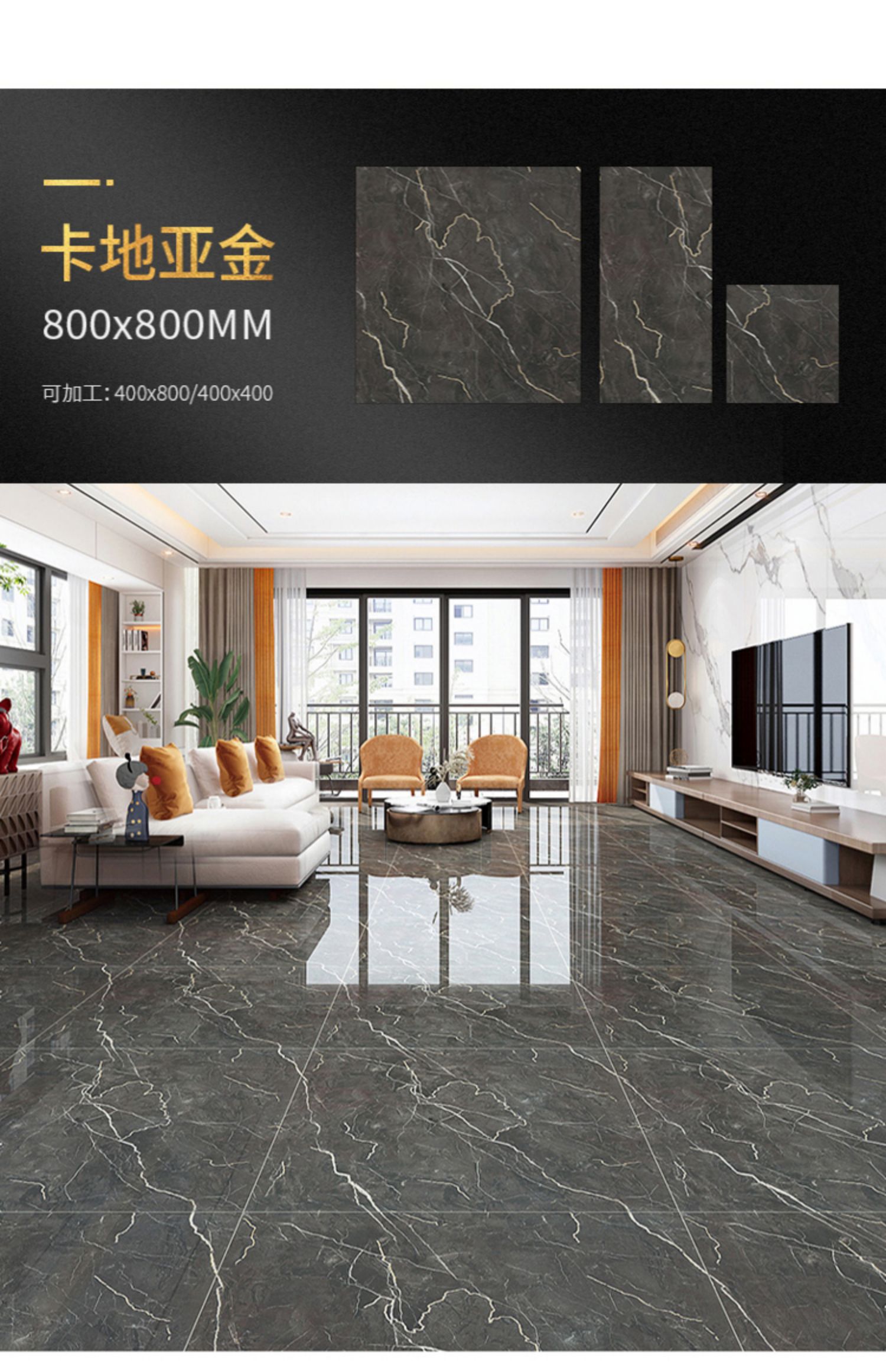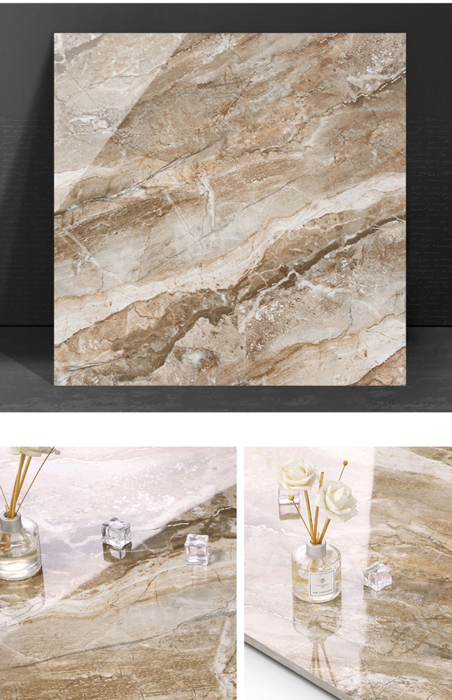 Bán buôn màu ấm vàng lụa tráng men toàn thân gạch đá cẩm thạch 800X800 phòng khách phòng ngủ chống trơn trượt lát sàn mạ vàng K vàng đất