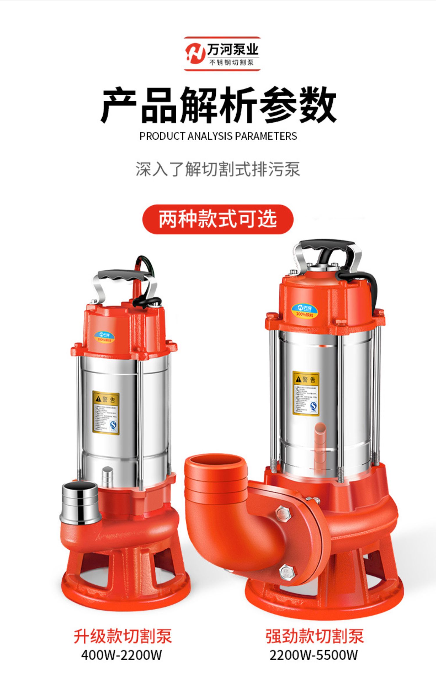 Bán buôn máy bơm chìm inox máy bơm nước thải loại cắt 220v máy bơm nước thải hộ gia đình bơm phân bùn nâng cao 380v