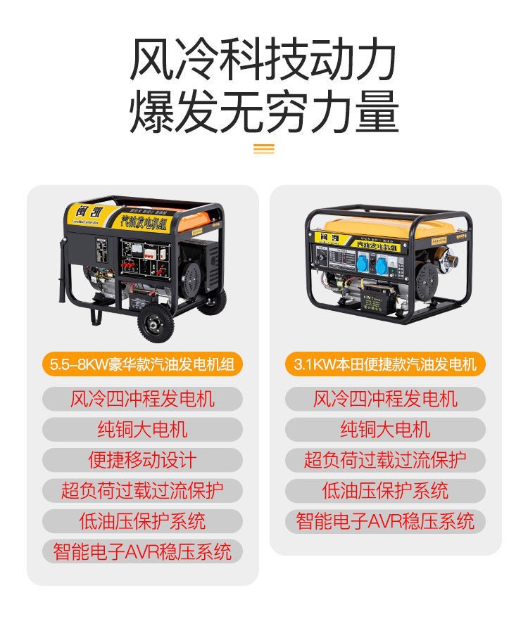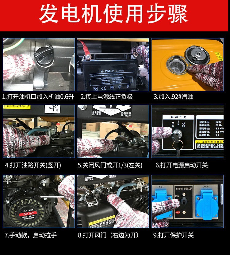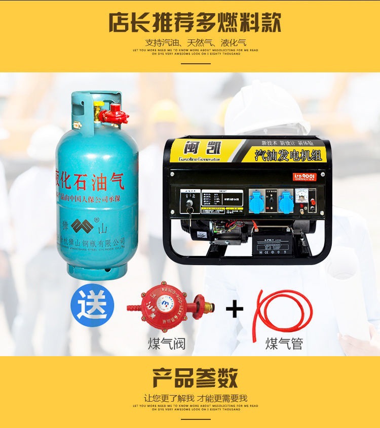 Bán buôn máy phát điện chạy xăng loại nhỏ ngoài trời hộ gia đình tiết kiệm nhiên liệu một pha 220v ba pha 380 vôn 5/6/8KW10 kilowatt diesel