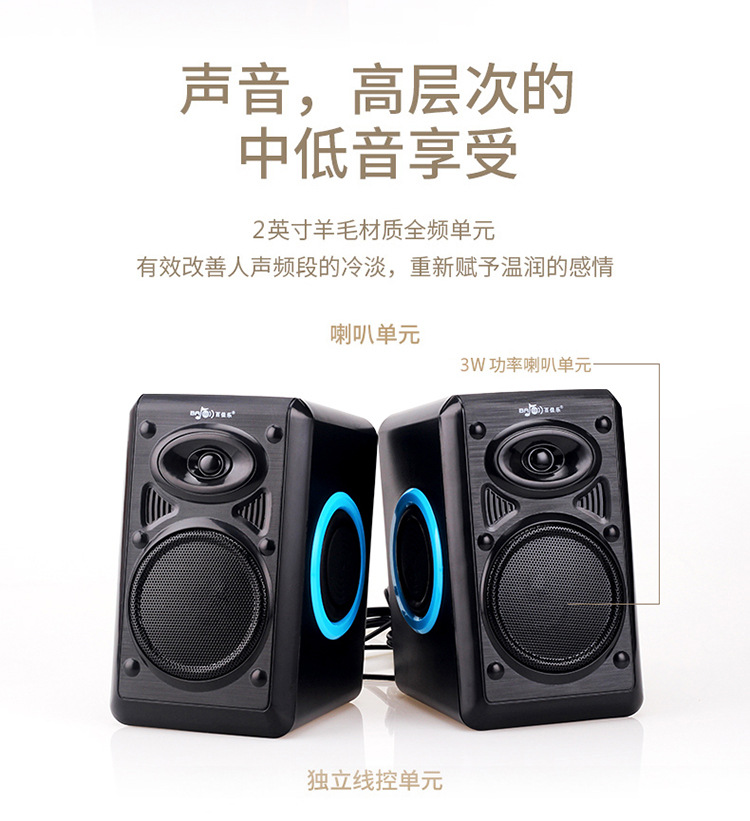 Bán buôn máy tính có dây USB âm thanh máy tính để bàn máy tính xách tay mini đa phương tiện 2.0 loa siêu trầm có màng loa