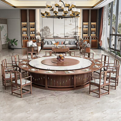 Bán buôn mới khách sạn kiểu Trung Quốc Bàn xoay điện bàn tròn lớn khách sạn câu lạc bộ bàn xoay tự động 20 người đá phiến gỗ chắc chắn là sản phẩm nổi bật trong dòng bàn ăn nhập khẩu, thiết kế hiện đại và sang trọng, phù hợp với nhiều không gian nội thất cao cấp.