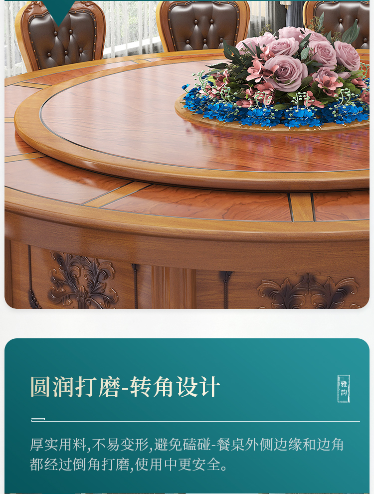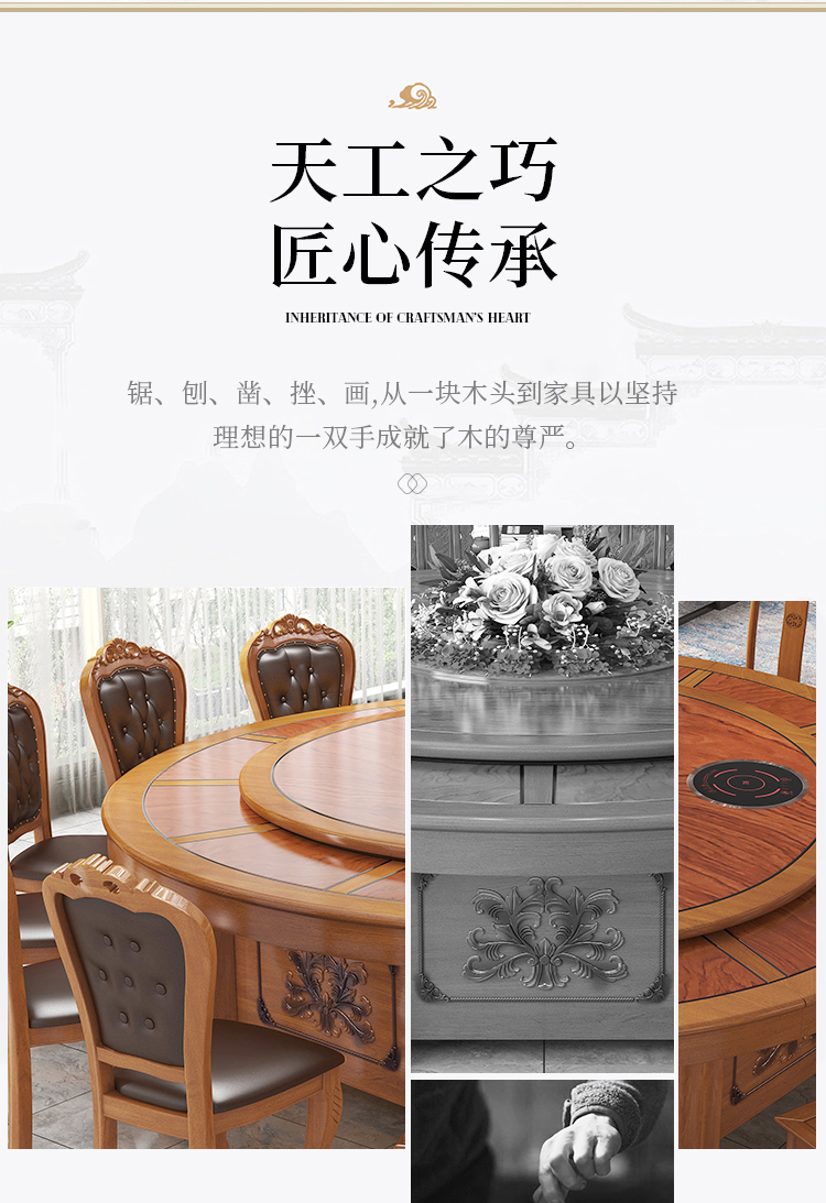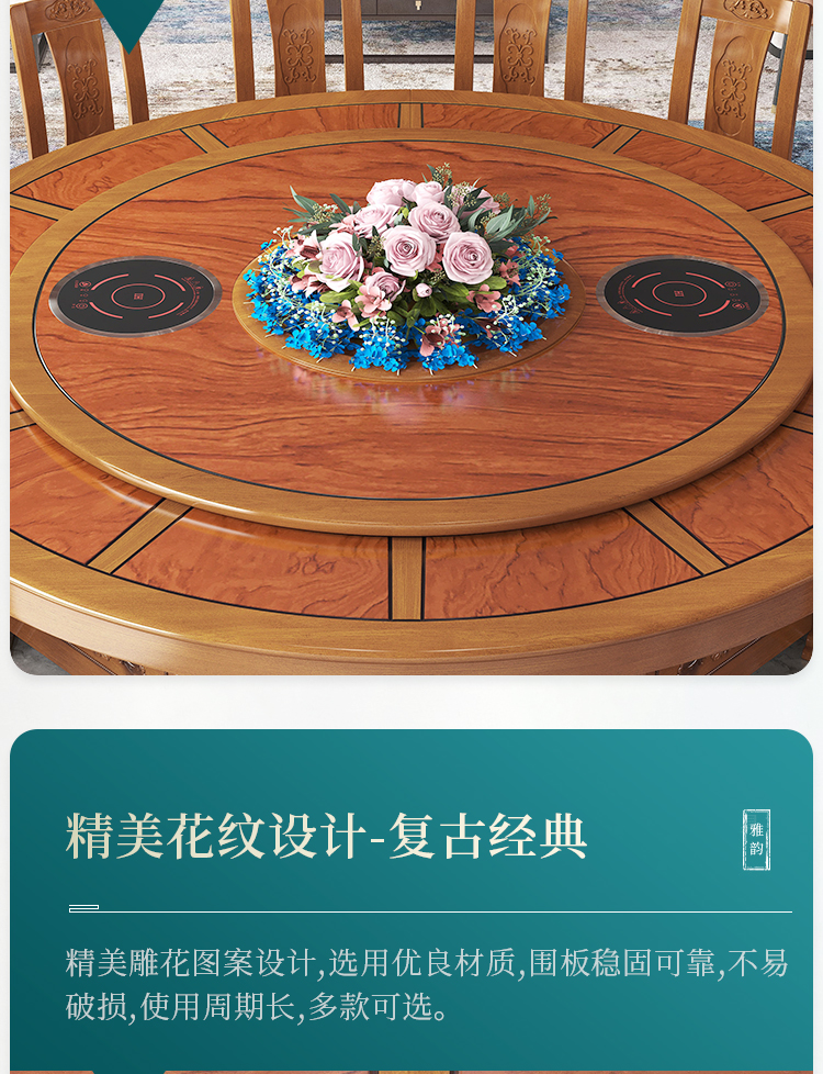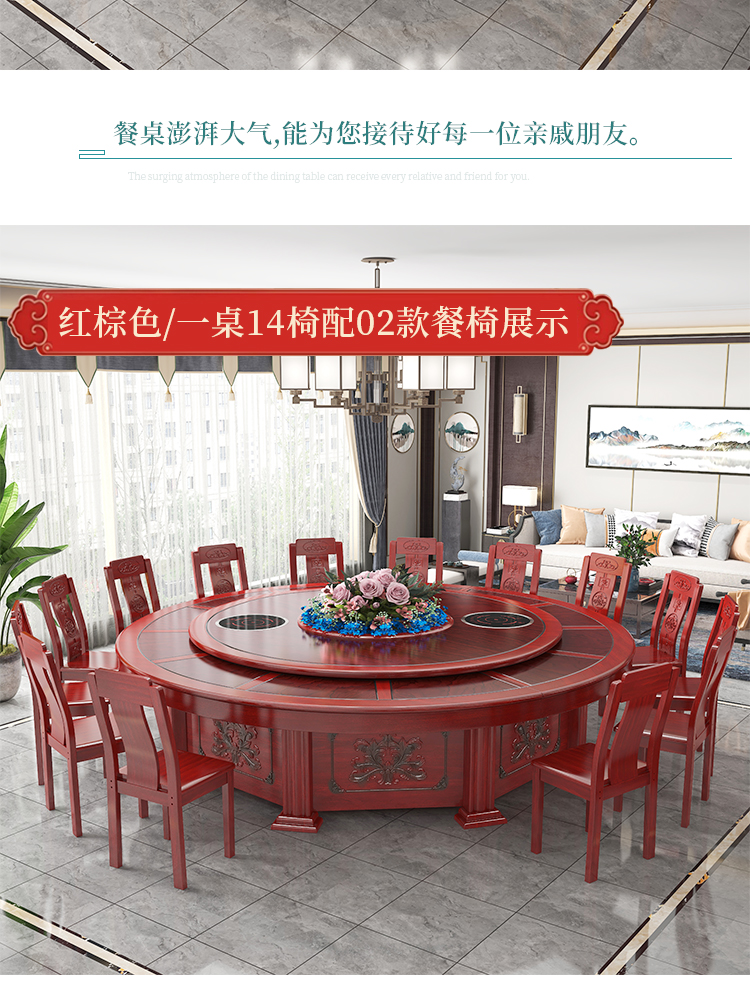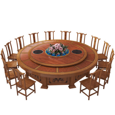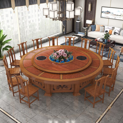 Bán buôn mới phong cách Trung Quốc bàn ăn khách sạn và ghế cổ chạm khắc 20 người bàn tròn lớn gỗ rắn hộp điện khách sạn tiệc lửa là sản phẩm nổi bật trong dòng bàn ăn nhập khẩu, thiết kế hiện đại và sang trọng, phù hợp với nhiều không gian nội thất cao cấp.
