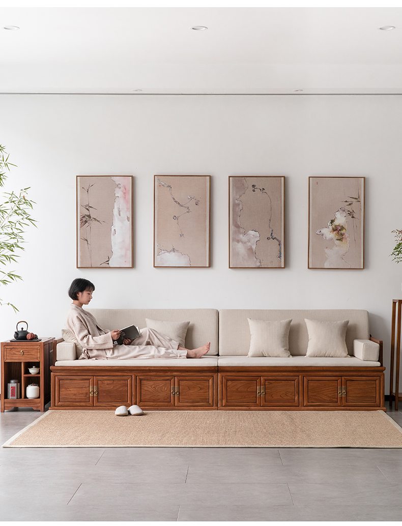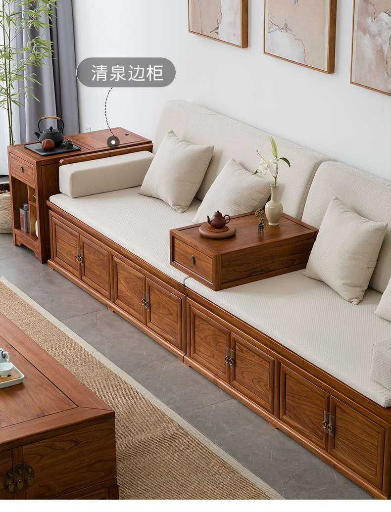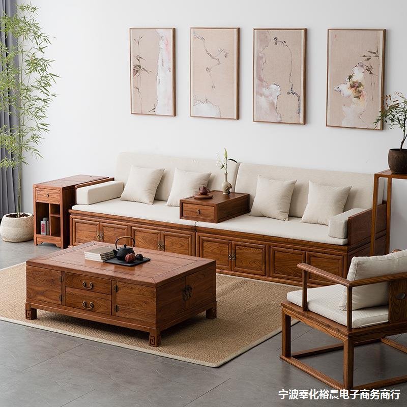 Bán buôn mới phong cách Trung Quốc rắn gỗ La Hán hộp giường lưu trữ cộng với băng ghế dự bị sụp đổ cổ Zen sofa giường cũ đồ nội thất cây du