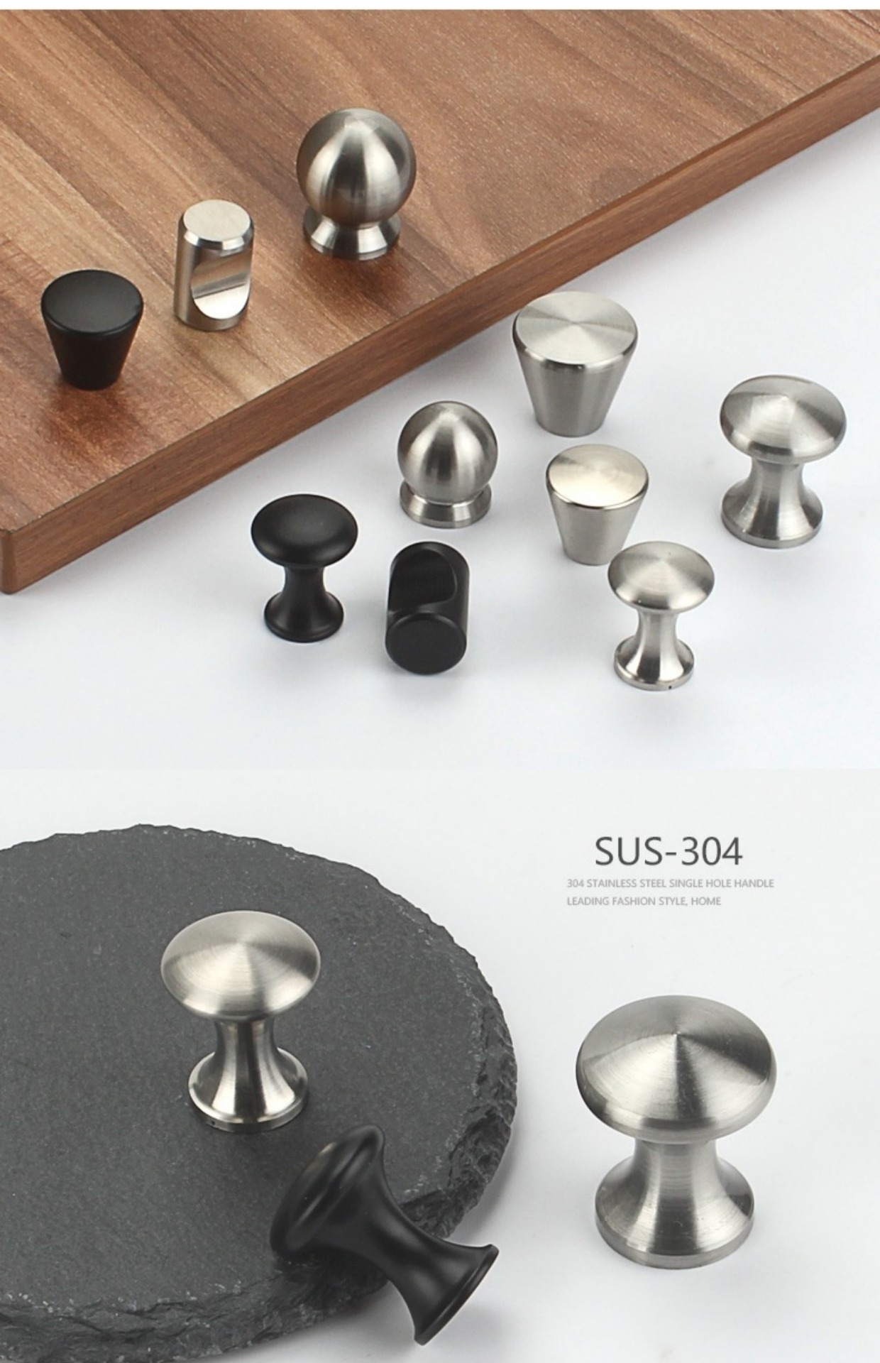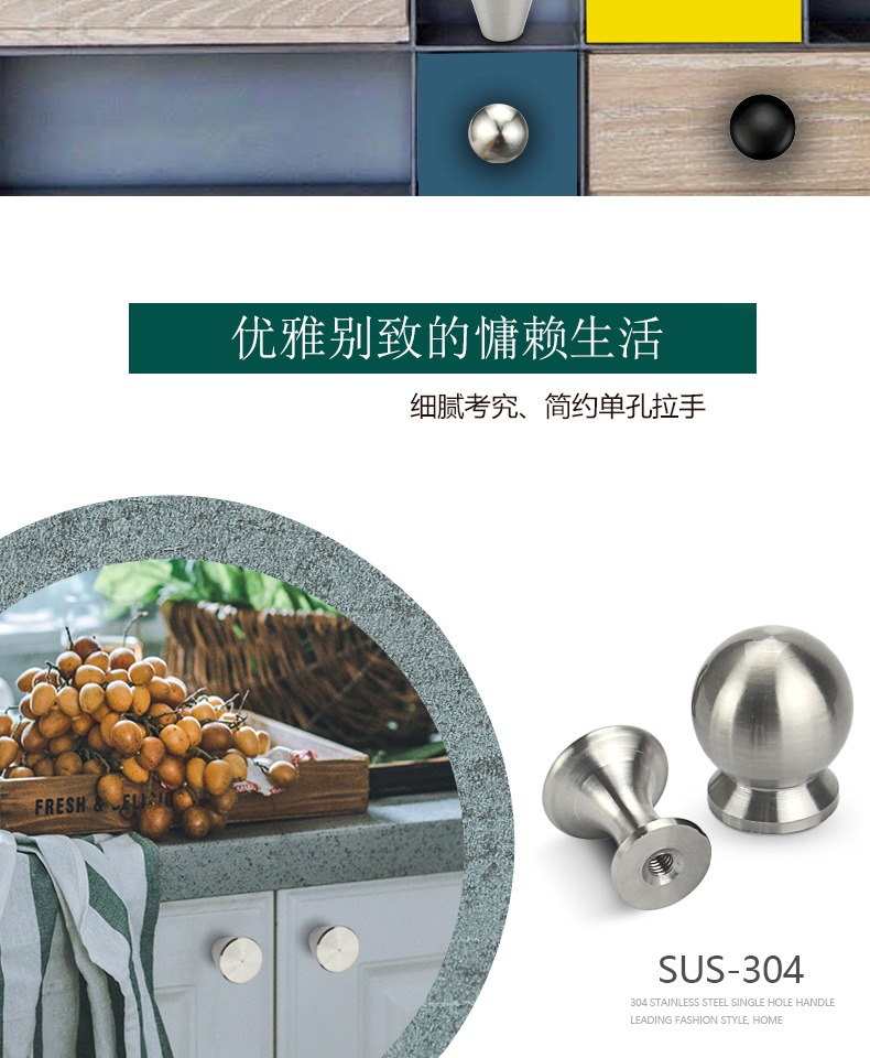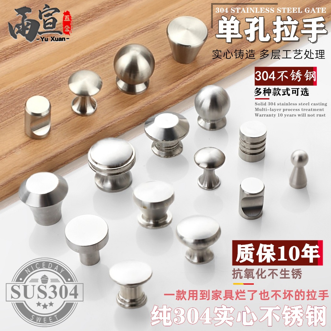 Bán buôn nguyên chất Inox 304 tay cầm ngăn kéo đơn giản chắc chắn tròn 1 lỗ bóng tay cầm tủ tủ quần áo cửa nhỏ