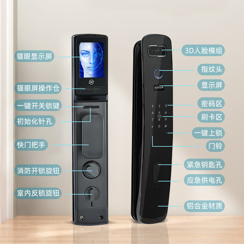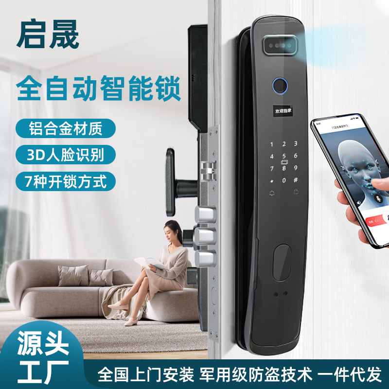 | 厂家批发3D人脸识别智能锁远程猫眼可视全自动家用电子密码指纹锁 |
