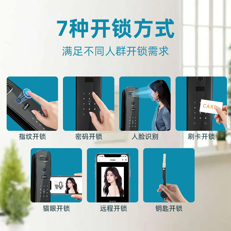 别墅家用全自动可视猫眼指纹智能密码锁远程3d人脸识别智能锁 |