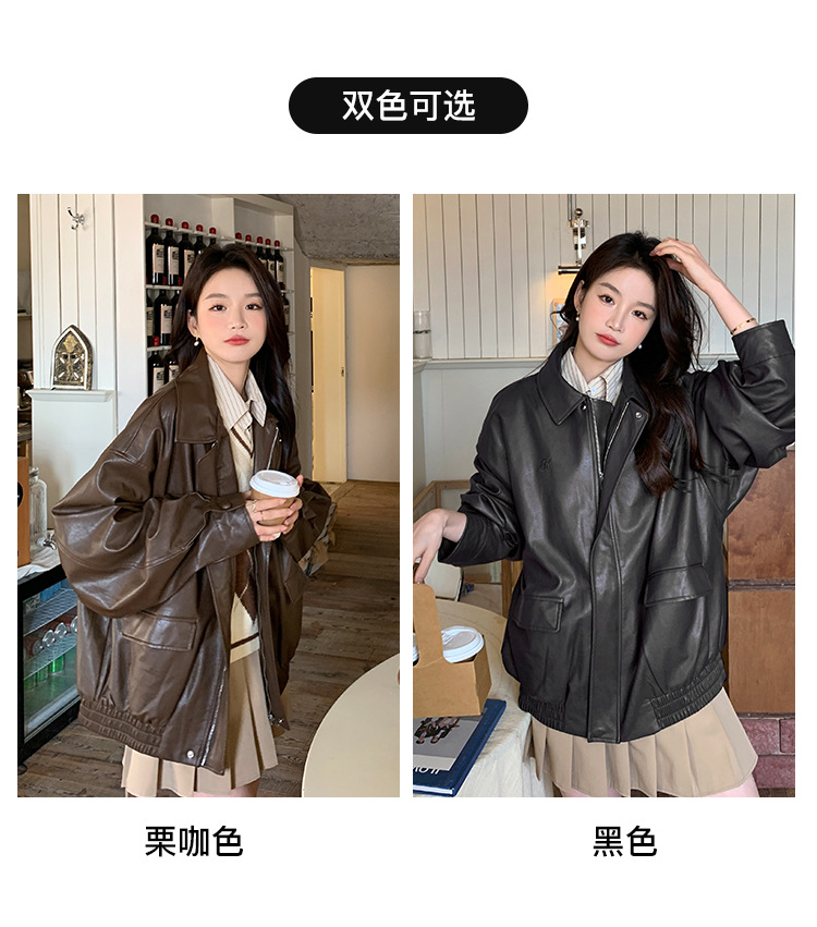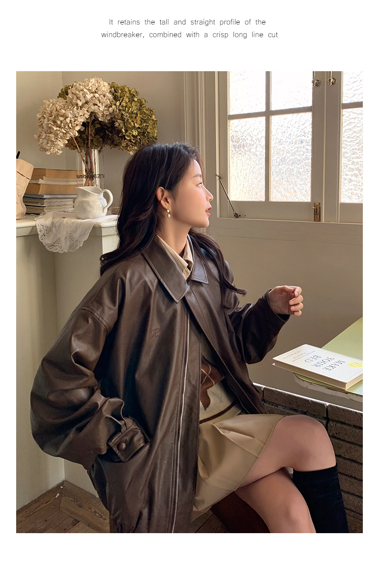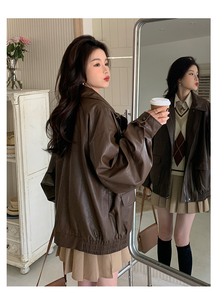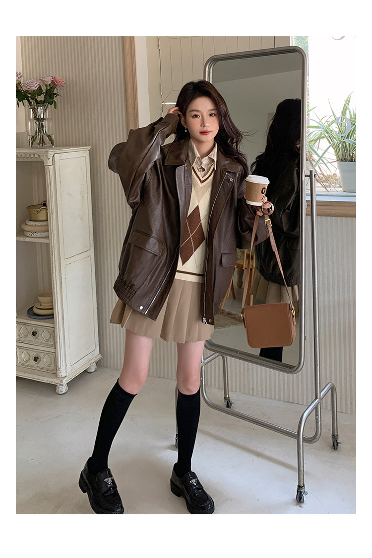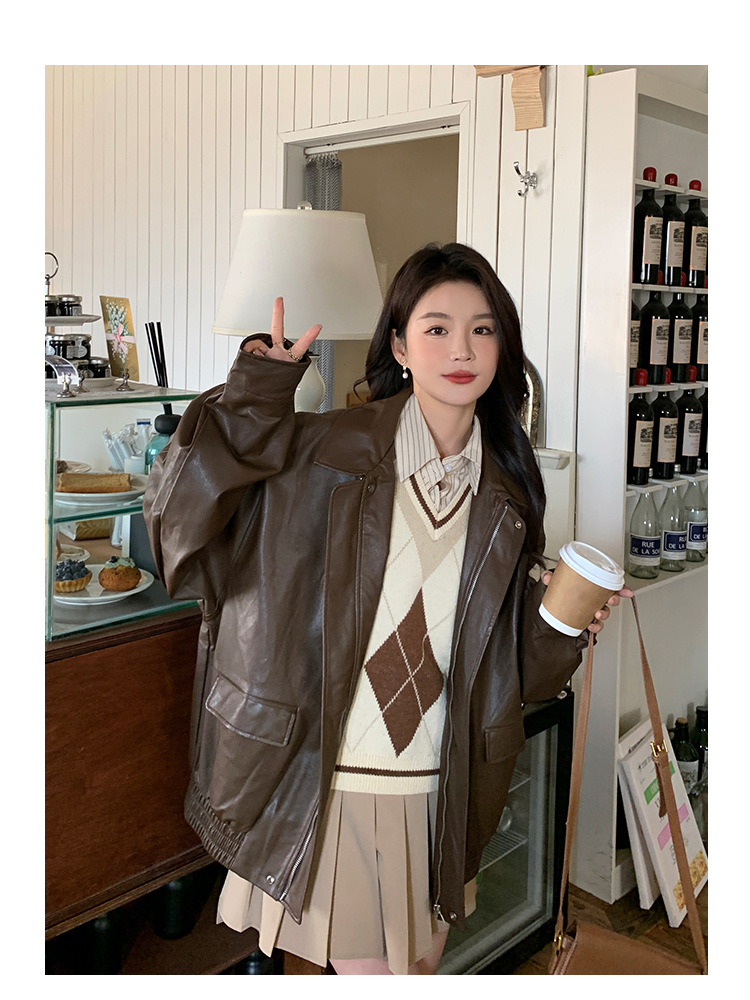 Bán buôn phong cách Hồng Kông ánh sáng retro thời trang hình bóng mỏng thêu chữ hạt dẻ nhỏ màu cà phê áo khoác da áo khoác nữ