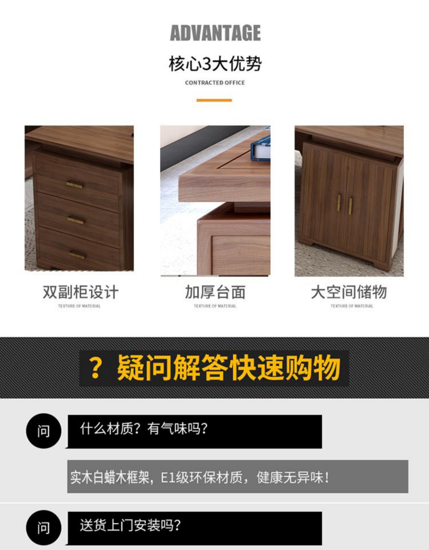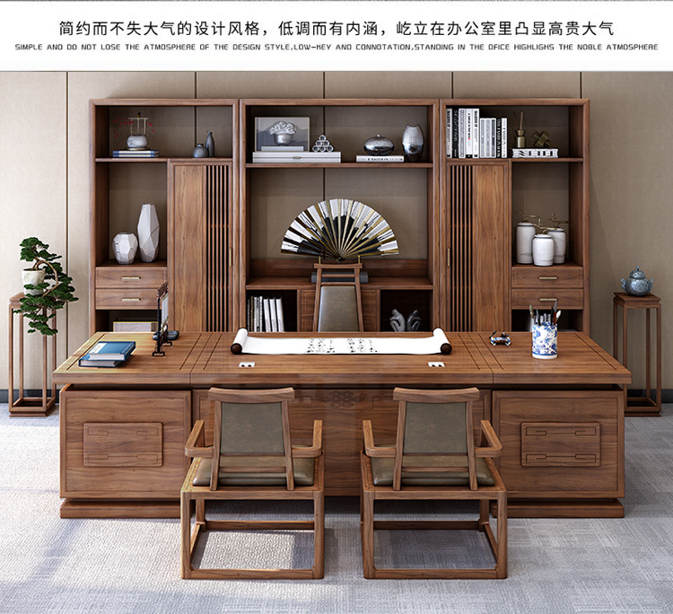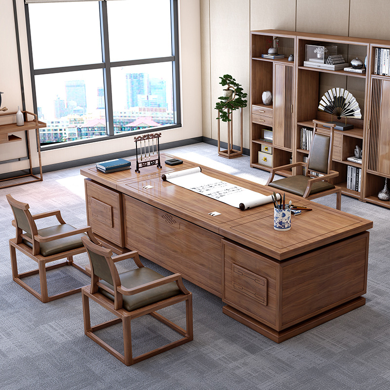 Bán buôn phong cách Trung Quốc mới bằng gỗ nguyên khối bàn làm việc ông chủ bàn ghế kết hợp tổng thống quản lý nội thất văn phòng óc chó trong