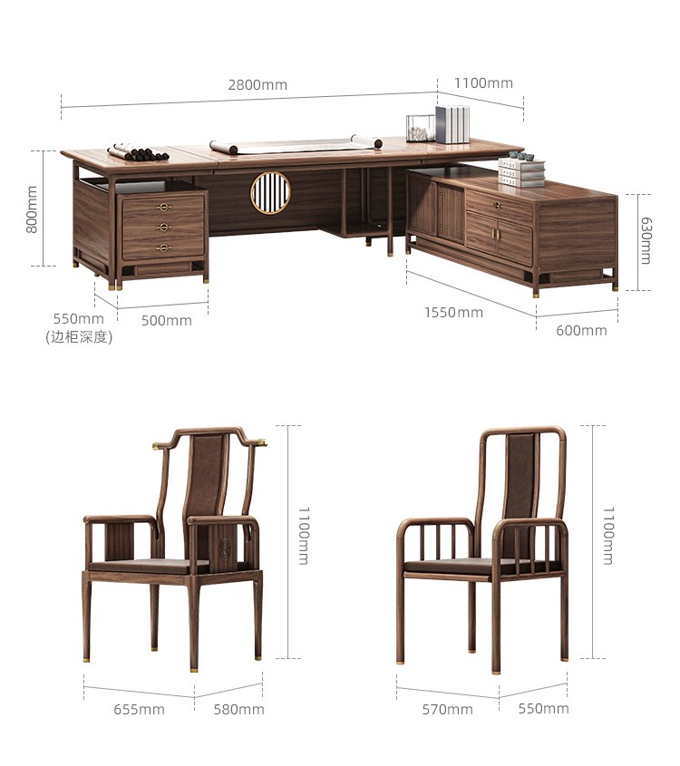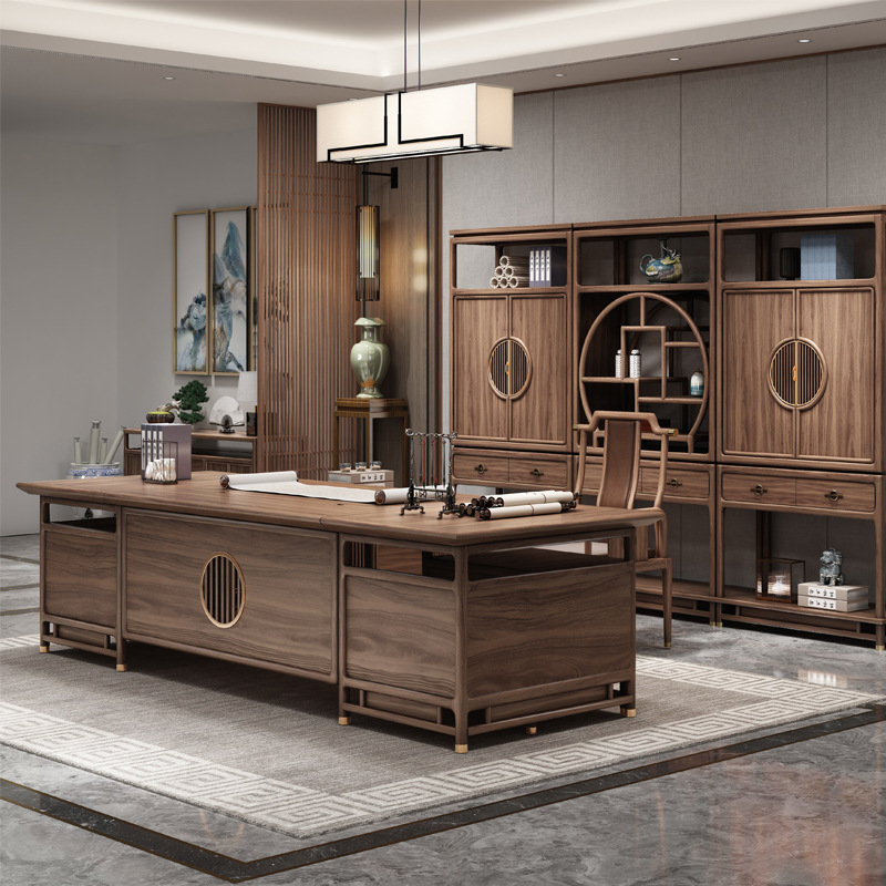 Bán buôn phong cách Trung Quốc mới bằng gỗ rắn ông chủ bàn ghế văn phòng kết hợp bàn điều hành đơn giản bàn điều hành bàn quản lý văn phòng