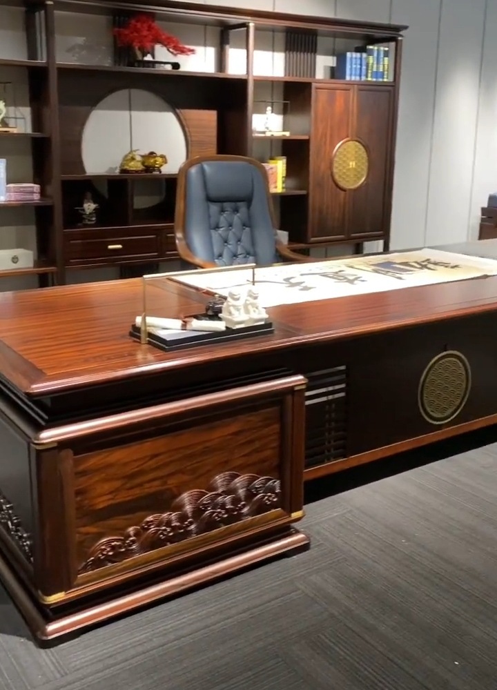 Bán buôn phong cách Trung Quốc mới nguyên chất gỗ nội thất văn phòng sóng loạt gỗ mun bàn điều hành bàn làm việc chủ tịch quản lý văn phòng