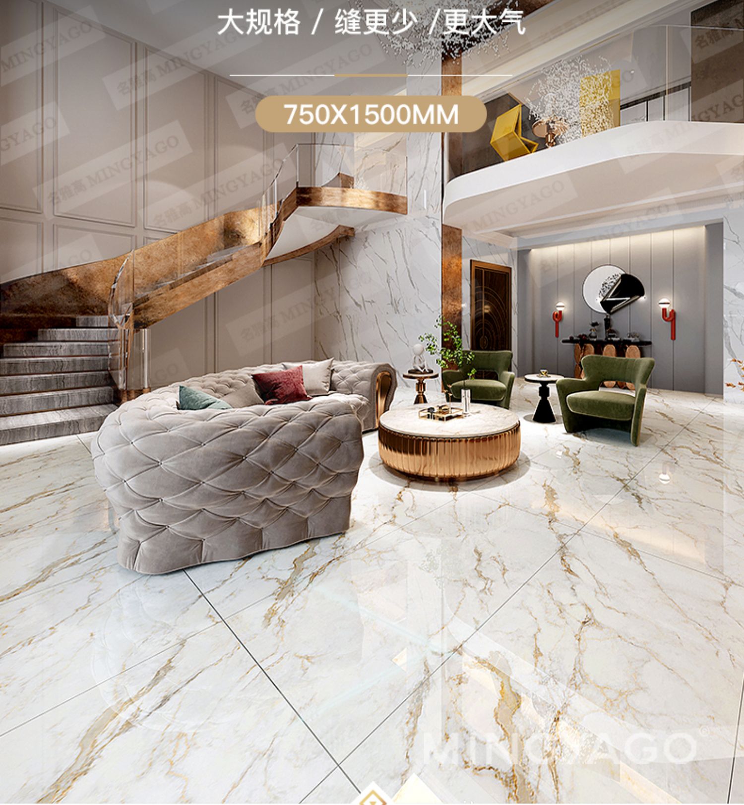 Bán buôn Quảng Đông Phật Sơn phiến lớn 750×1500 gốm lát sàn gạch toàn thân bằng đá cẩm thạch phòng khách lát sàn ánh sáng sang trọng bụng cá