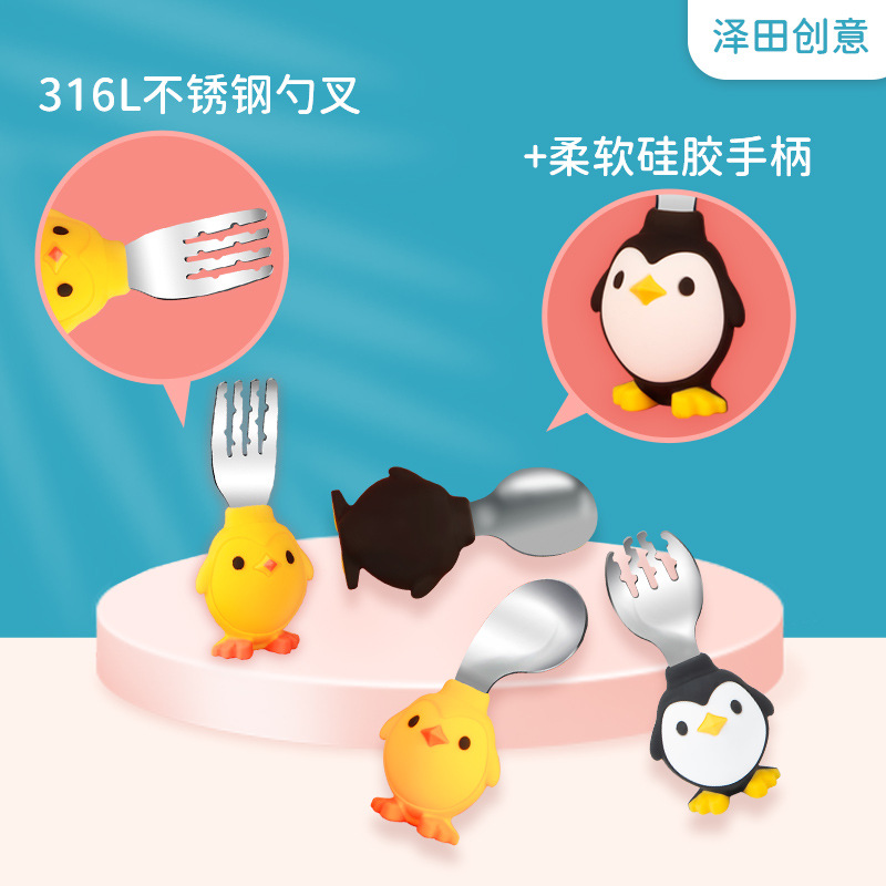 Bán Buôn Tay Cầm Ngắn Inox 316 Bộ Đồ Ăn Trẻ Em Muỗng Nĩa Bộ Hộ Gia Đình Dễ Thương Cho Bé Tập Ăn Muỗng