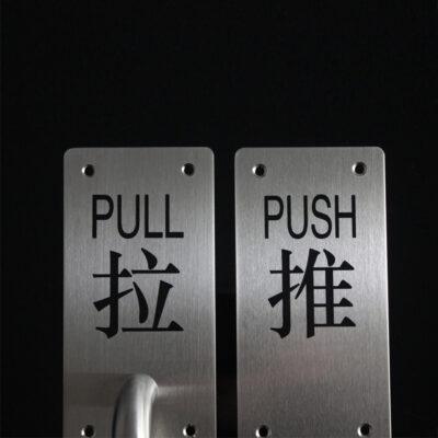 Bán buôn thép không gỉ chà nhám chữ tấm kéo đẩy tiếp xúc tay cầm cửa kênh Tay nắm cửa chống cháy tấm kéo đẩy