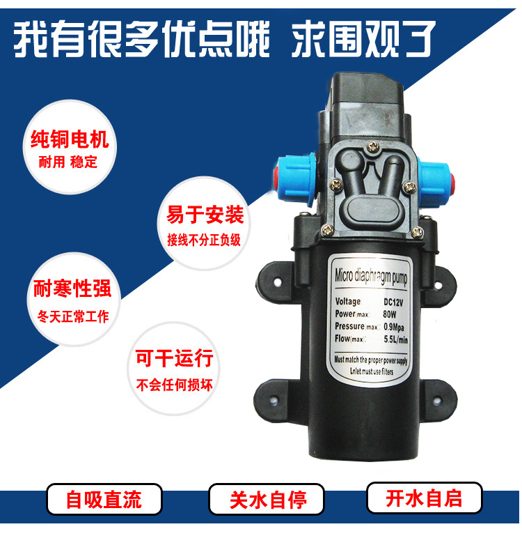 Bán buôn thu nhỏ DC màng bơm hộ gia đình 12V80W tự mồi tăng áp bơm điện xe ô tô 24V rửa xe điện áp cao thông minh