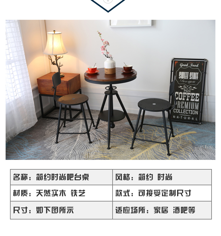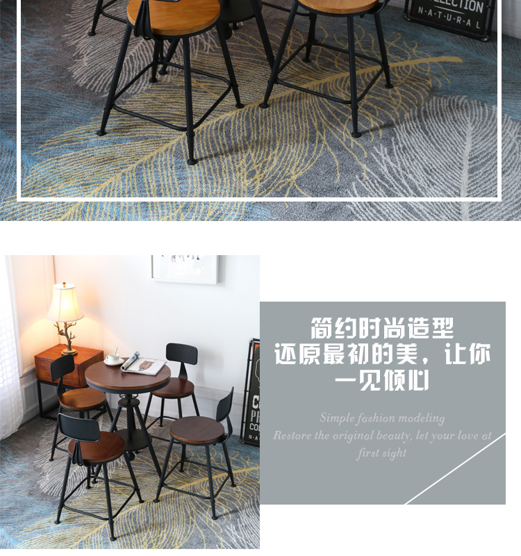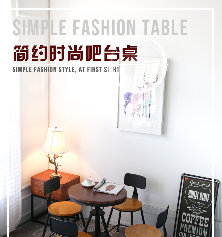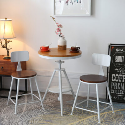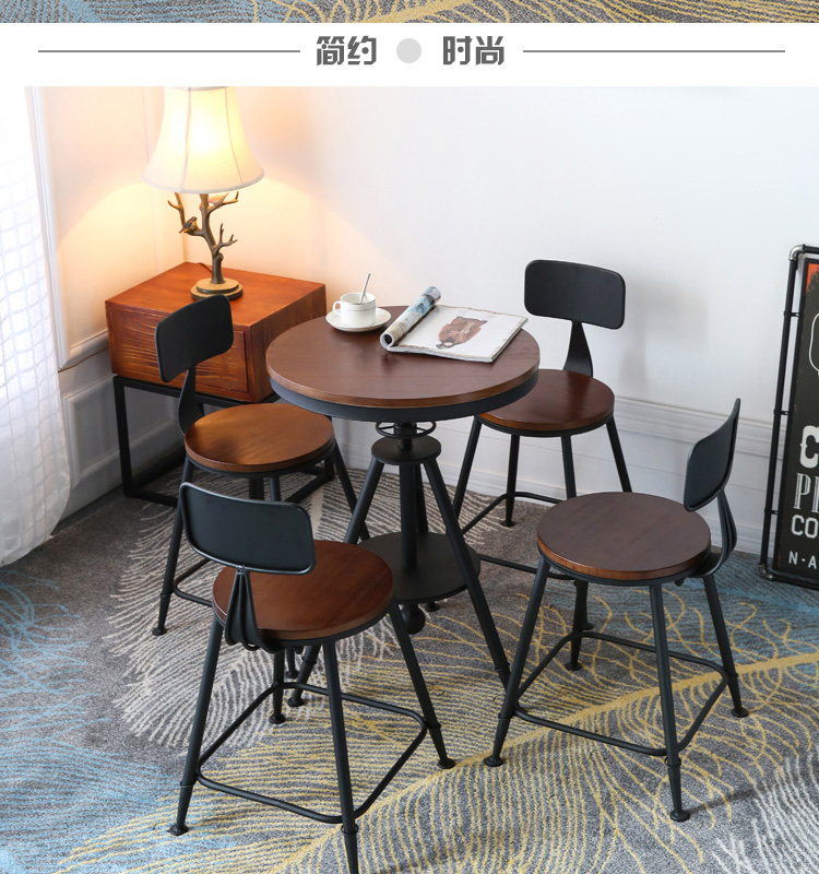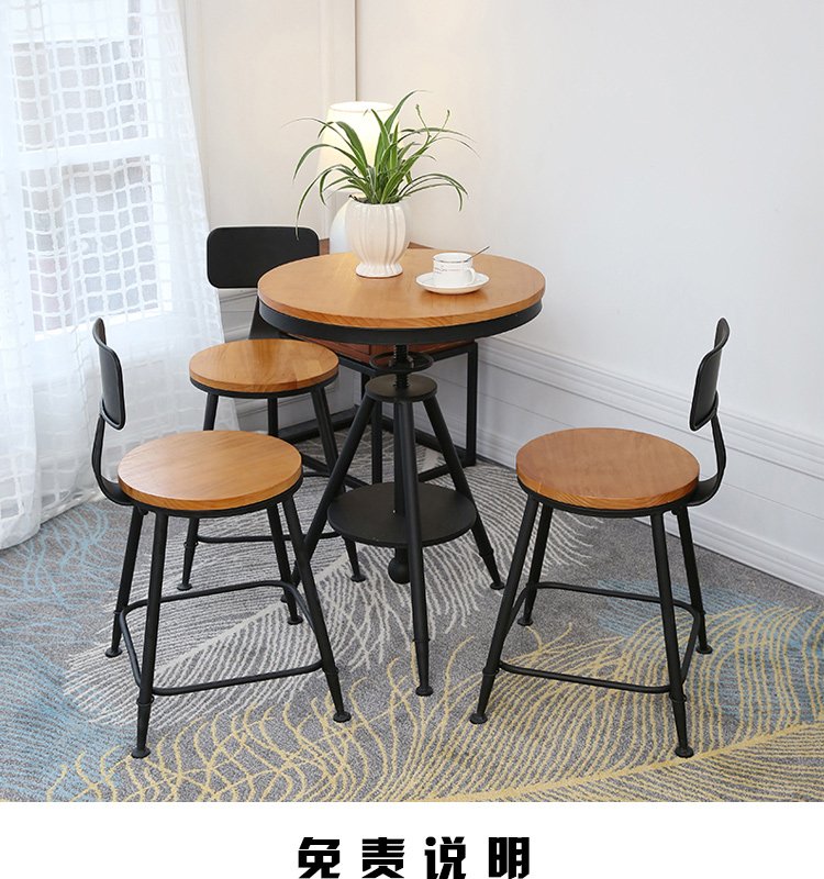 Bán buôn tối giản hiện đại sắt rèn bàn ghế gỗ ba món tròn nâng bàn ăn quán trà sữa quán cà phê ban công nhỏ