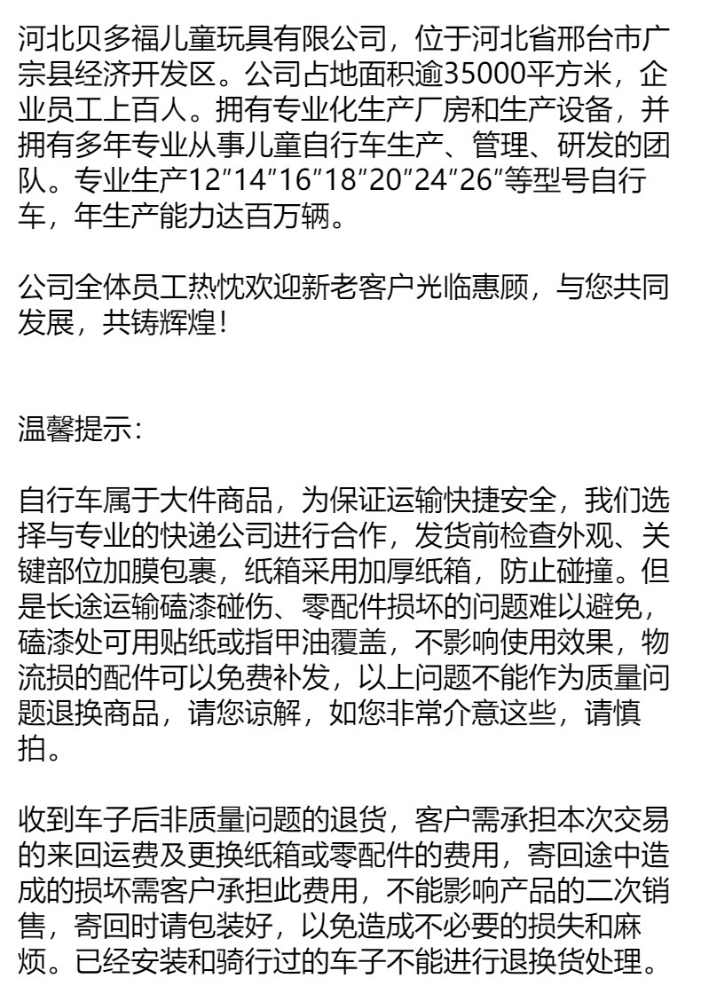 Thương hiệu: BDF XE ĐẠP Mã sản phẩm: Tsing Yi Loại: Xe đạp trẻ em Ngoại thương: Có Màu sắc: Tsing Yi Qingdai Blue/Tsing Yi Carmine Red/Tsing Yi Apricot Pollen/Tsing Yi Green/Tsing Yi Green Danh mục sản phẩm: Xe đạp trẻ em Kiểu dáng: BDF-DW-1205 Loại bằng sáng chế: Không Thông số kỹ thuật: Cài đặt 14 inch 95% / Cài đặt 16 inch 95% / Cài đặt 18 inch 95% / Cài đặt 18 inch 95% Danh mục đồ chơi: Đồ chơi xe đẩy Độ tuổi áp dụng: Trên 3 tuổi Chứng nhận hàng hóa 3C Mã số: 2015012201773980 Kích thước: 16 inch Chứng nhận xuất khẩu ngoại thương: CE Có video hướng dẫn mua hàng không: Không Có nguồn cung ứng đặc biệt để xuất khẩu xuyên biên giới: Không