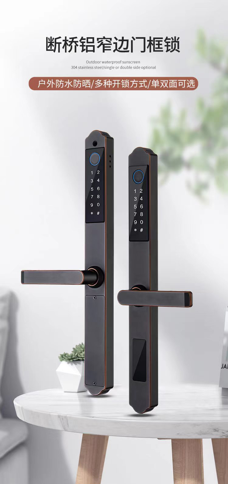 Bán buôn ximer khóa vân tay cửa sân vườn Khóa cửa nhôm khóa cửa thông minh ngoài trời chống thấm nước chống đông cửa trượt vân tay hai mặt