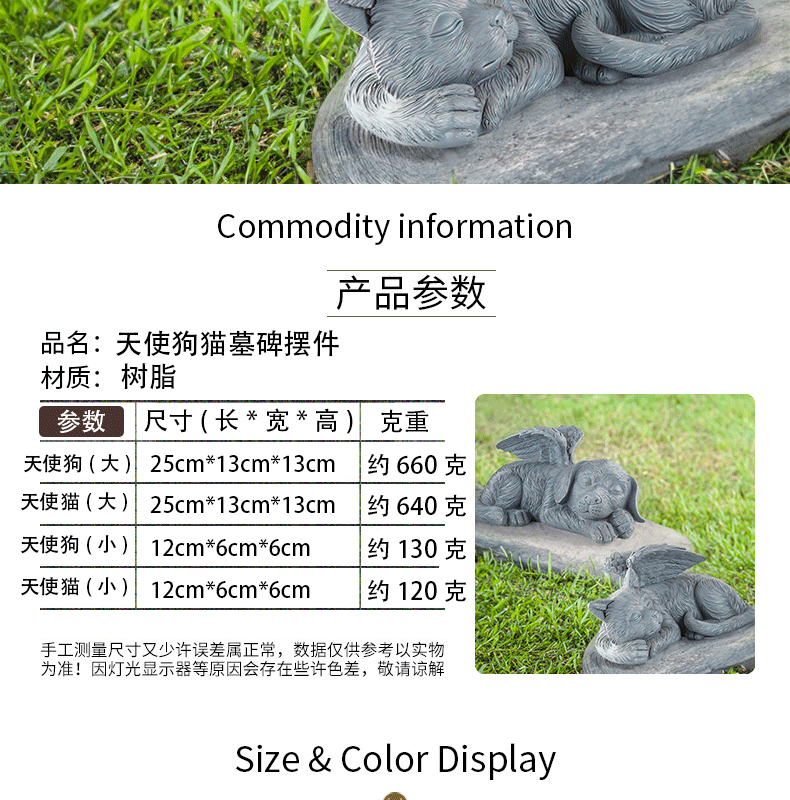 Bán buôn xuyên biên giới phim hoạt hình sáng tạo thiên thần chó mèo động vật bia mộ khu vườn tưởng niệm bãi cỏ đồ trang trí thủ công bằng nhựa là lựa chọn lý tưởng cho không gian công cộng, sân vườn hoặc khu đô thị. Sản phẩm giúp nâng cao hình ảnh chuyên nghiệp và sạch đẹp cho môi trường sống.
