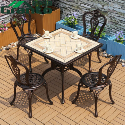 Bàn cà phê bằng thép ngoài trời kết hợp bàn ghế bằng nhôm đúc ba hoặc năm mảnh ngoài trời ban công sân vườn sân vườn đồ nội thất ngoài trời giải trí