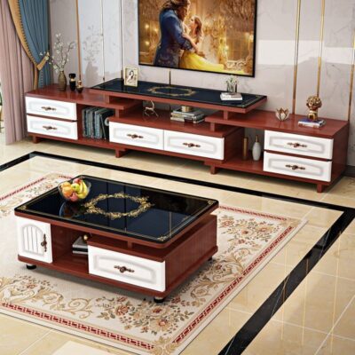Bàn cà phê phong cách châu âu bàn hiện đại bàn cà phê đơn giản tủ tivi tròn kết hợp bàn cà phê kính cường lực tủ tivi nhỏ phòng khách