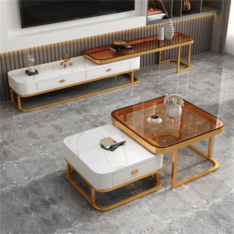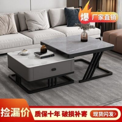 Bàn cà phê phòng khách nhà mới đơn giản nhỏ đèn bàn sang trọng hiện đại căn hộ nhỏ lưới màu đỏ bàn cà phê tủ TV kết hợp