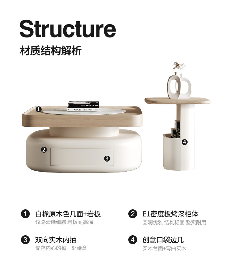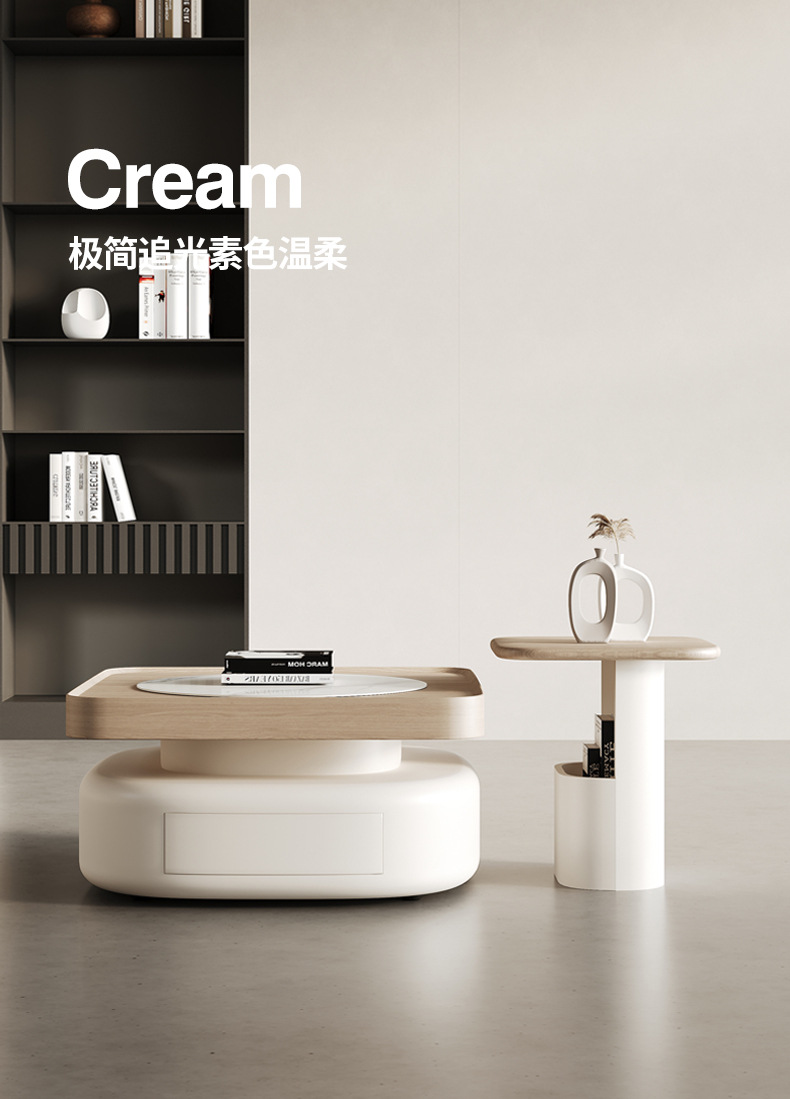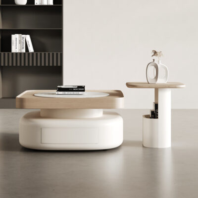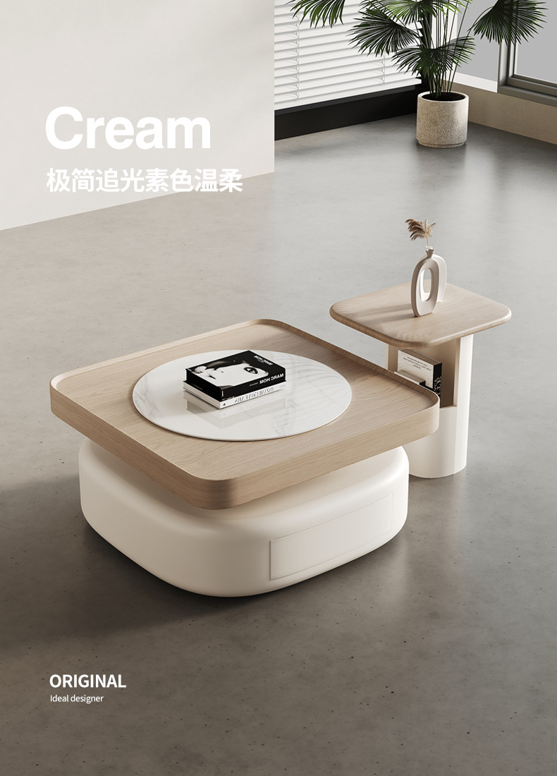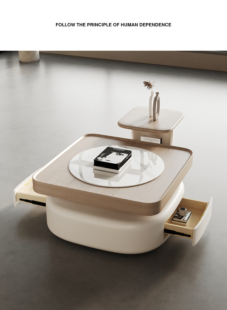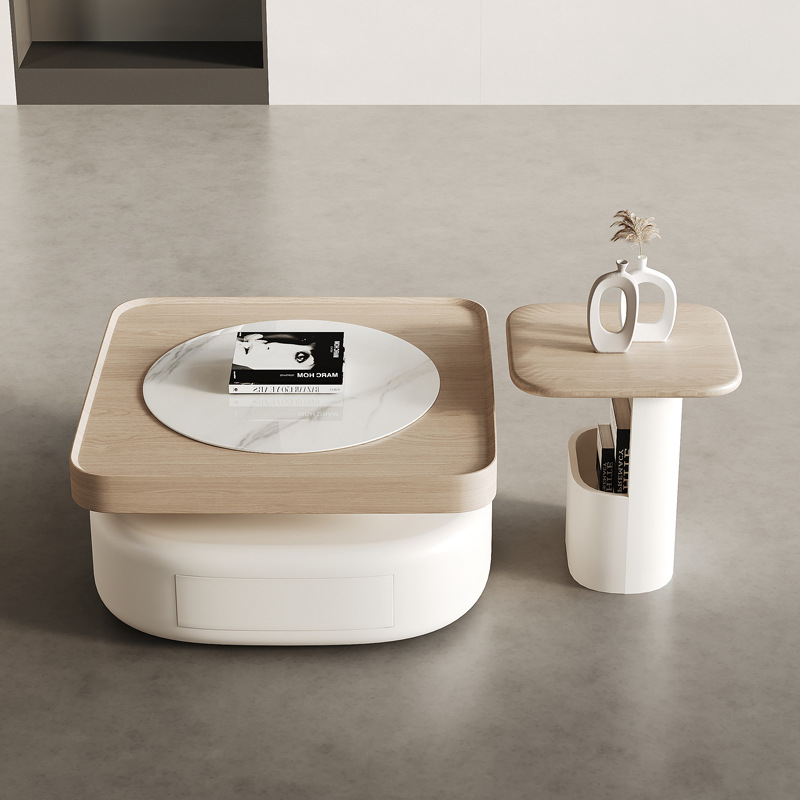 Bàn cà phê phòng khách vuông bằng đá với ánh sáng Ý sang trọng hiện đại phong cách tối giản kết hợp bàn cà phê thiết kế căn hộ nhỏ