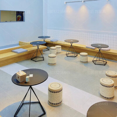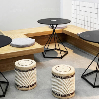 Bàn cà phê tròn đơn giản kiểu Nhật in quán trà sữa sắt rèn sáng tạo bàn tròn nhỏ lưới đỏ bàn cửa hàng tráng miệng chuyên dụng