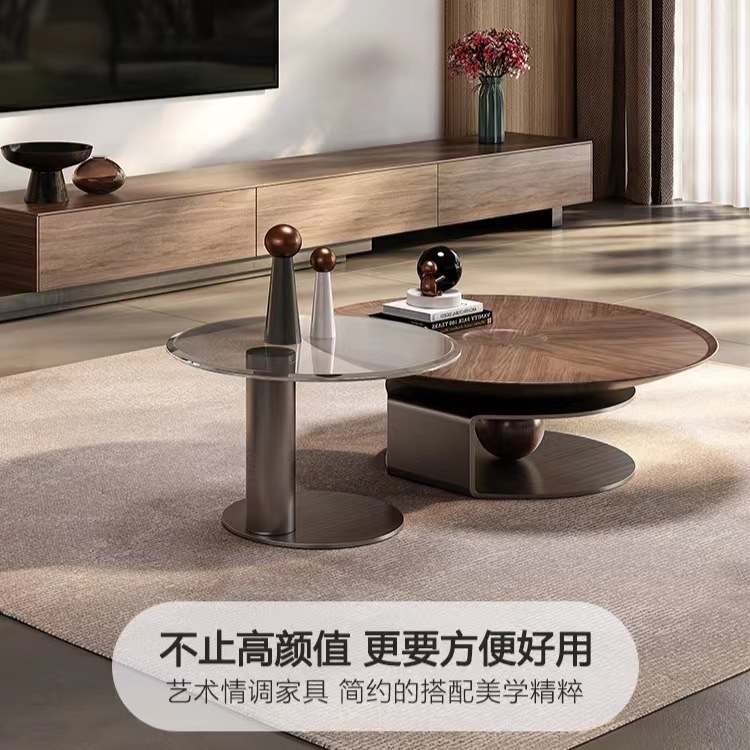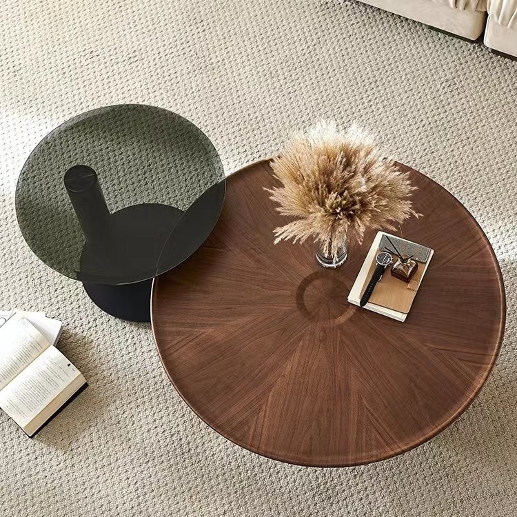 Bàn cà phê tròn kiểu Ý gỗ nguyên khối đơn giản sang trọng cảm giác phòng khách ánh sáng sang trọng hiện đại tối giản phong cách thiết kế thích hợp căn hộ nhỏ sáng tạo
